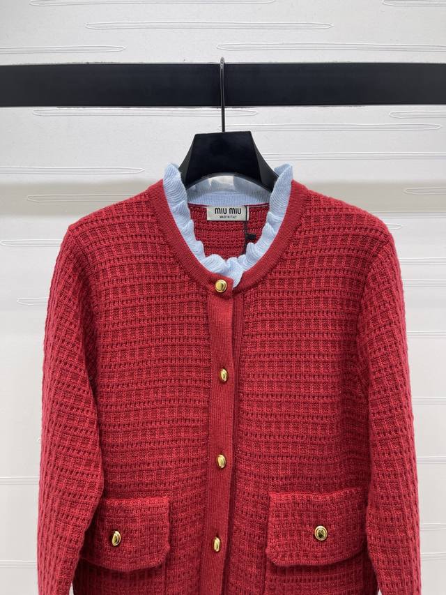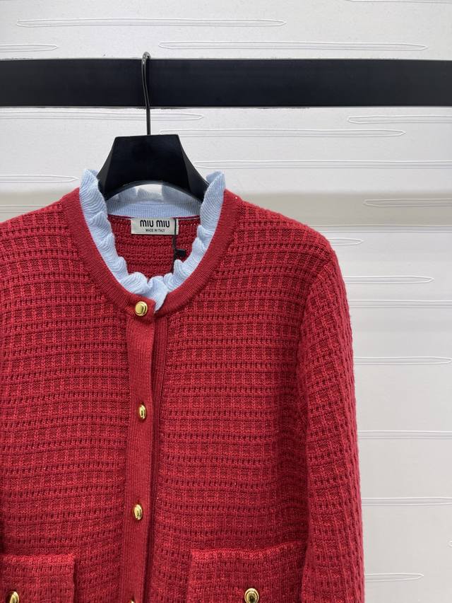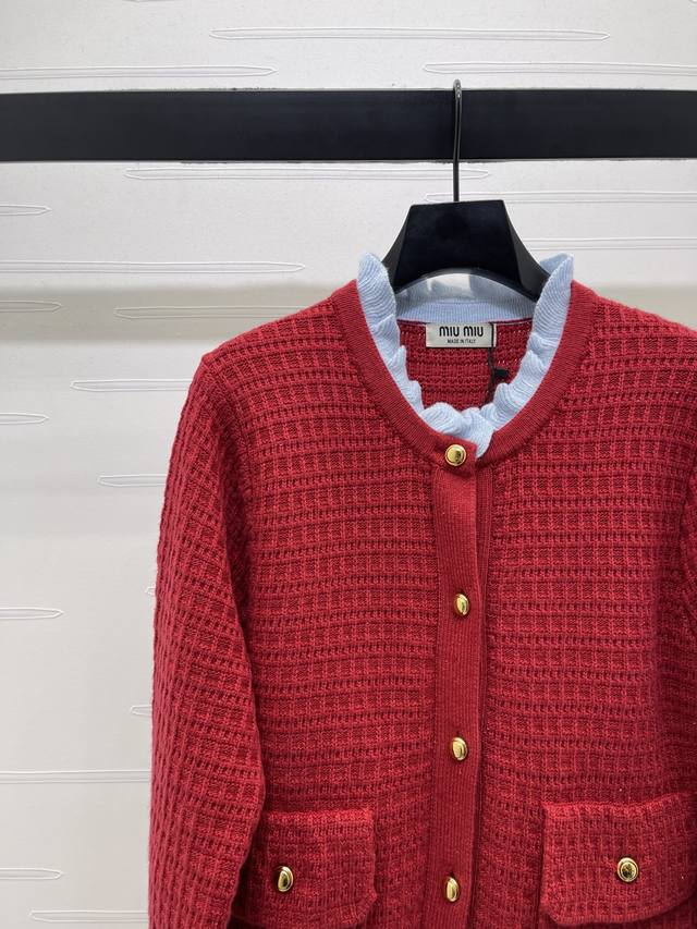 New Arrival! High-Quality Original Miu Mi*2026 Early Spring Collection! Color-Blocked Knit Cardigan! Crafted from custom wool yarn, it's skin-friendly, comfortable, soft, and textured. Features a long-sleeved cardigan with ruffled edges and a color-blocked neckline. The outer layer is 3D crochet for a layered look, offering both warmth and style. It exudes Miu Mi's elegant, preppy vibe, perfect for autumn and winter wear, whether worn alone or layered. Ideal for everyday wear and commuting, it has a retro and youthful feel! Available in 3 colors! Sizes SM-L3! High-quality bulk order A706B430C DDD