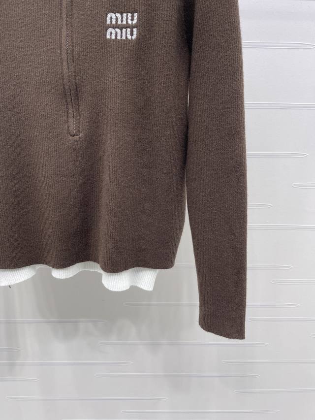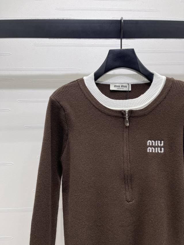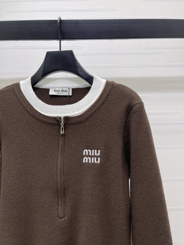 New Arrival! High-Quality Original Miu Mi*2026 Early Spring Collection! Color-blocked Faux Two-Piece Zipper Long-Sleeve Cardigan! Custom-made wool knit material, skin-friendly, comfortable, soft and textured. The round neck knit cardigan features a contrasting color-blocked design at the neckline and hem, creating a faux two-piece layering effect. Embroidered lettering and a micro-logo on the chest showcase Miu Miu's elegant and preppy style. Perfect for autumn and winter wear, whether worn alone or layered, or for everyday commuting. A retro and youthful style! Available in 3 colors! SM-L3! High-quality bulk order A706B370C DDD