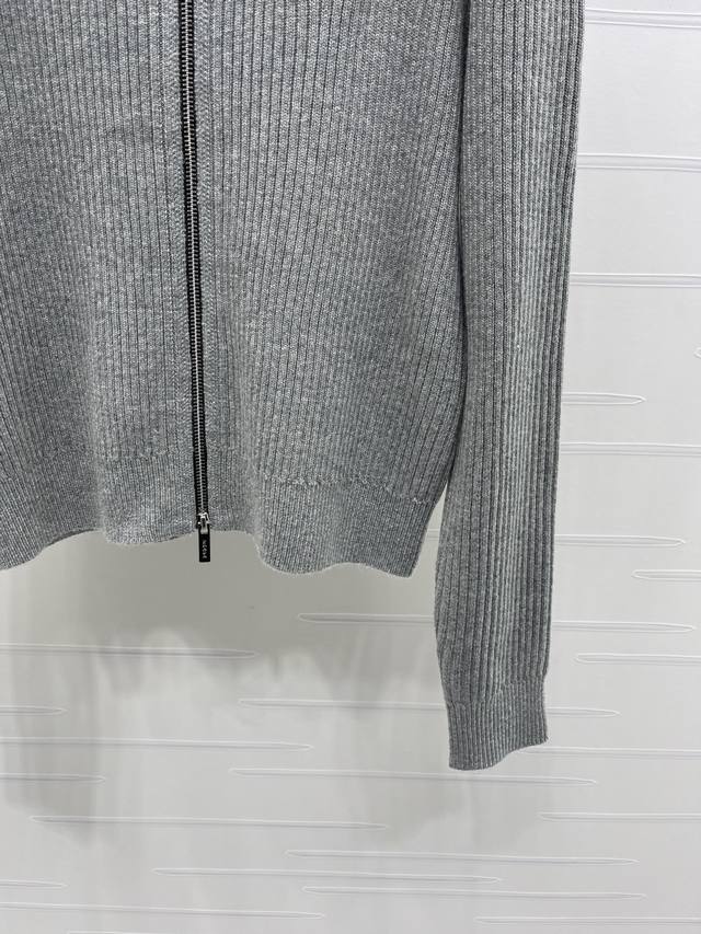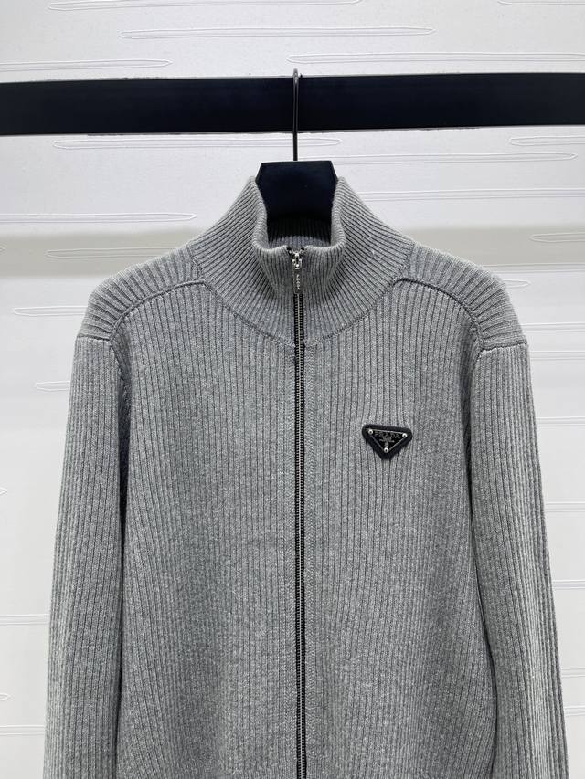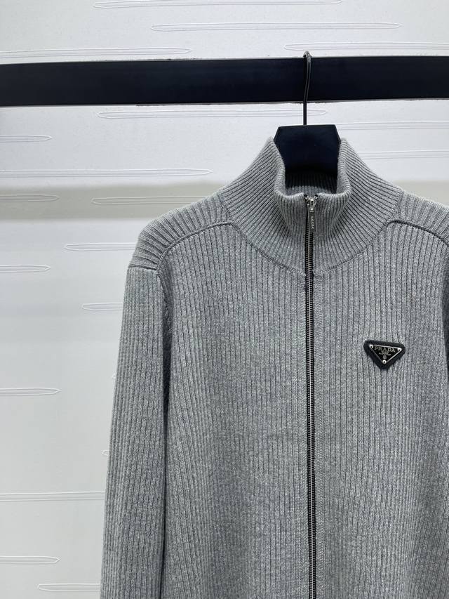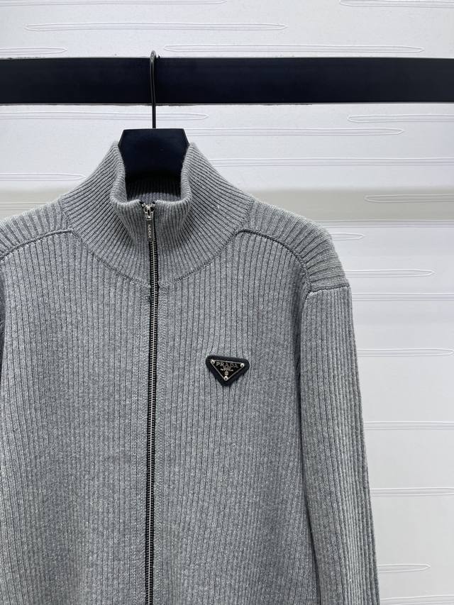New Arrival! High-Quality Original Prad* 2025 Autumn/Winter Collection! Knitted Zip-Up Cardigan! Crafted from custom wool yarn, it boasts a premium feel, is incredibly soft and comfortable. Features a turn-down collar, a knitted zip-up design, ribbed trim, and a smooth, textured body with a fine, straight knit, effortlessly highlighting its exquisite details. A triangular logo adorns the chest, showcasing the brand's style. Fashionable and chic, with a structured shoulder cut for a relaxed, preppy look! Available in 3 colors! Sizes SM-L3! High-quality bulk order A706B420C DDD