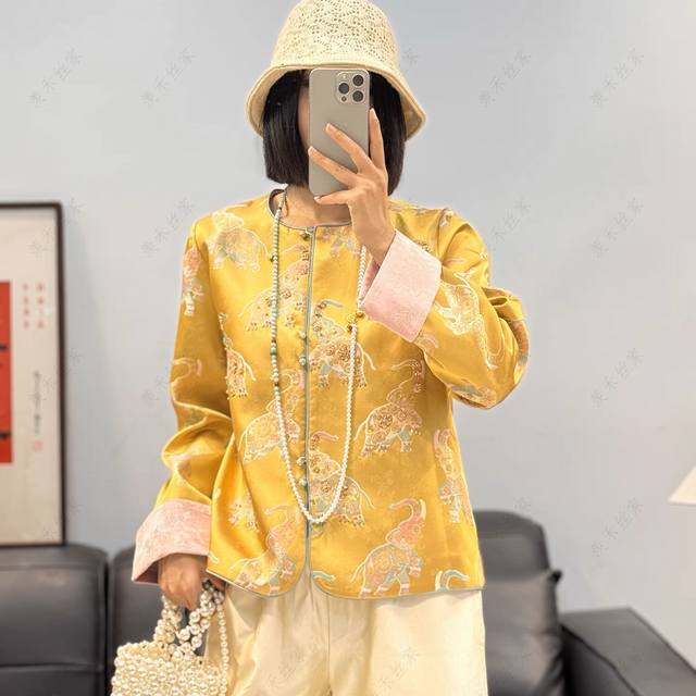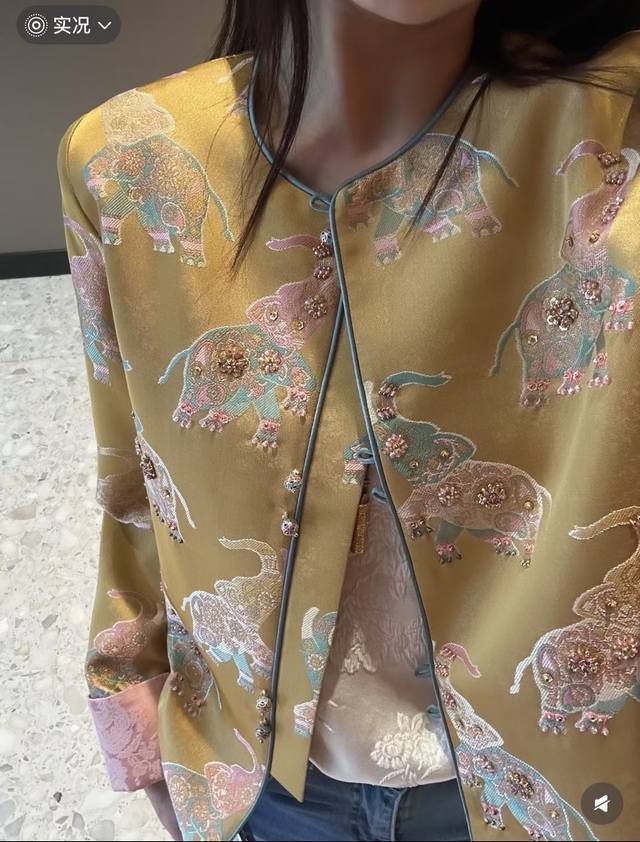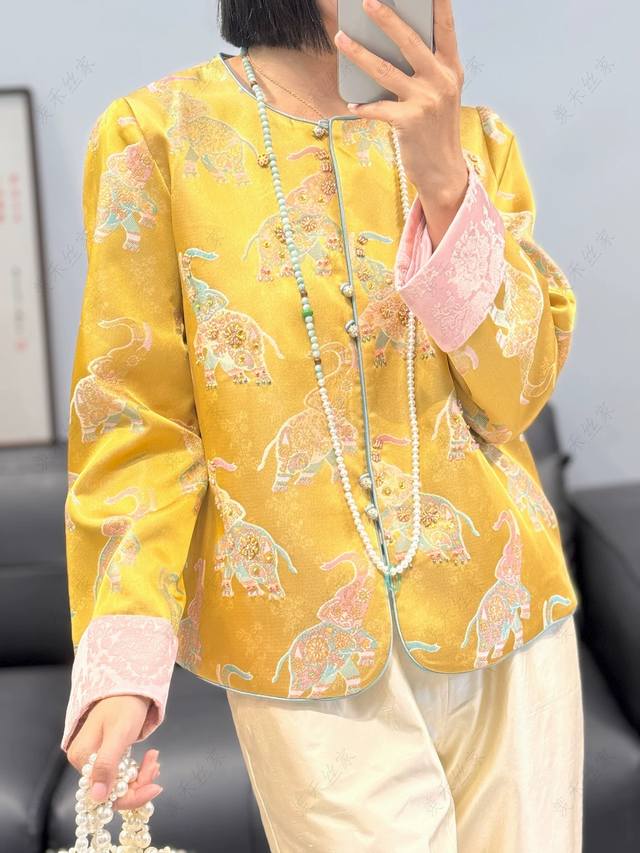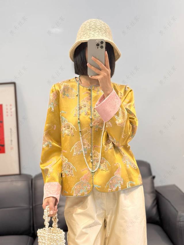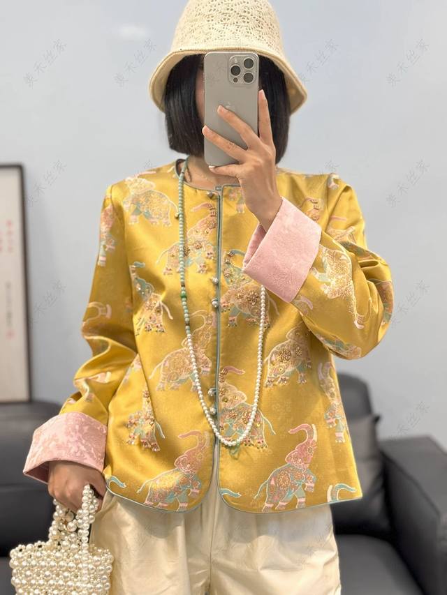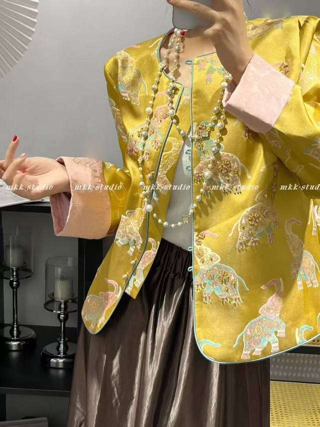 Little Elephant Heavy Industry Jacquard Handmade Beaded Cuffs Contrast Color Fashionable Light Luxury Slimming Jacket
