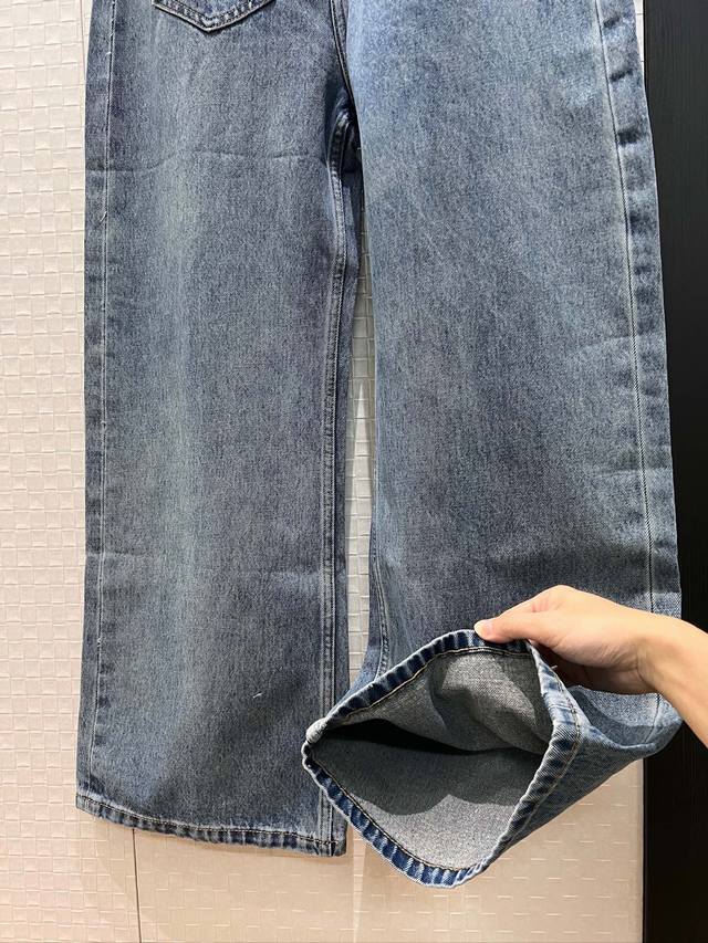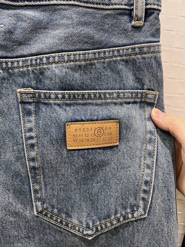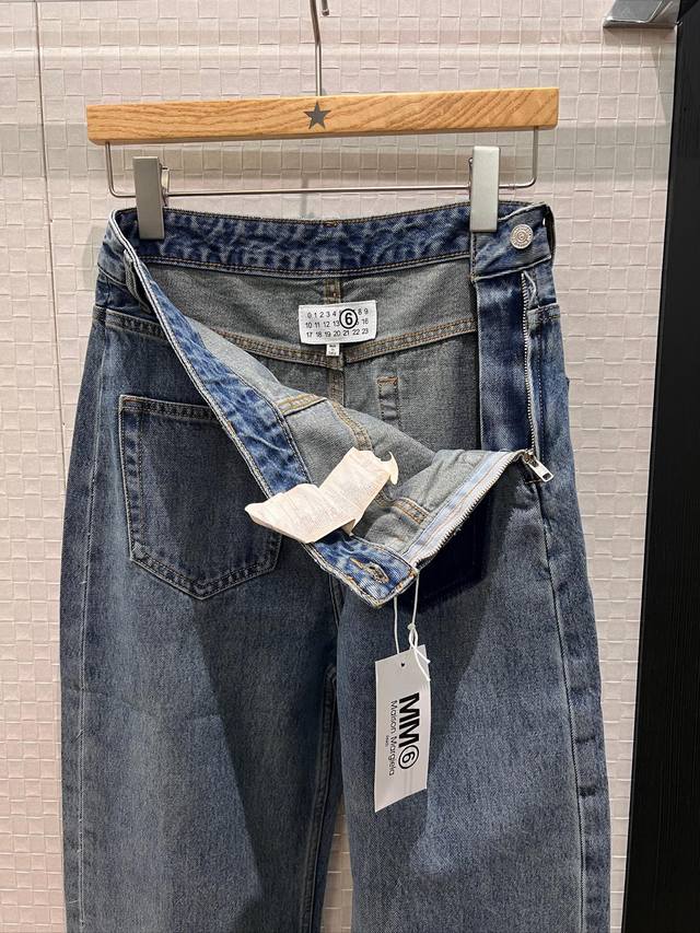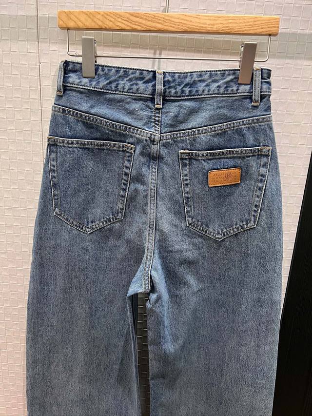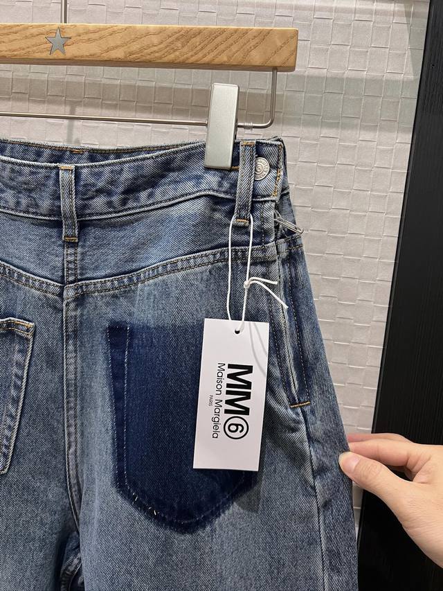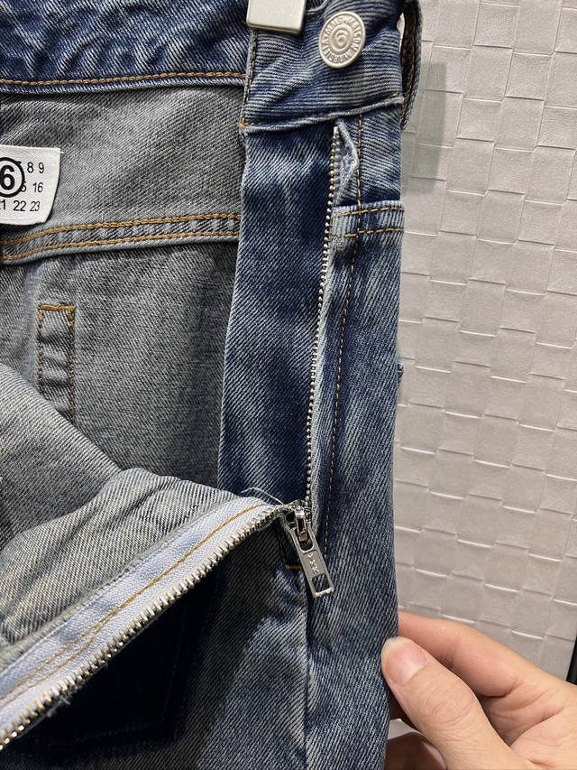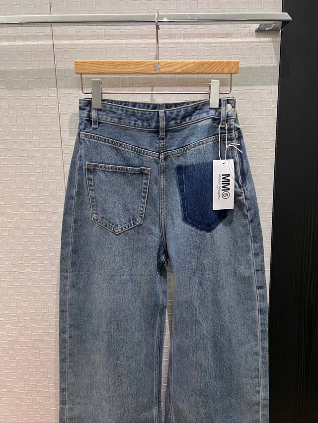 New Arrival Mm6 Margiela Reversible Color-Blocked Pockets, Backless Design, Straight Leg Jeans, Wide Leg Jeans, Logo Leather Label, Hardware Accessories, Mold Opening, Casual, Youthful, Versatile, 26-29 DDD