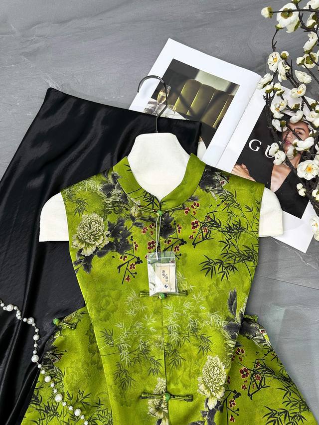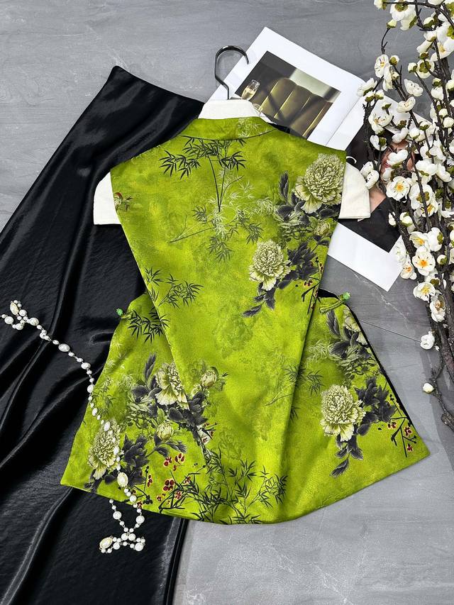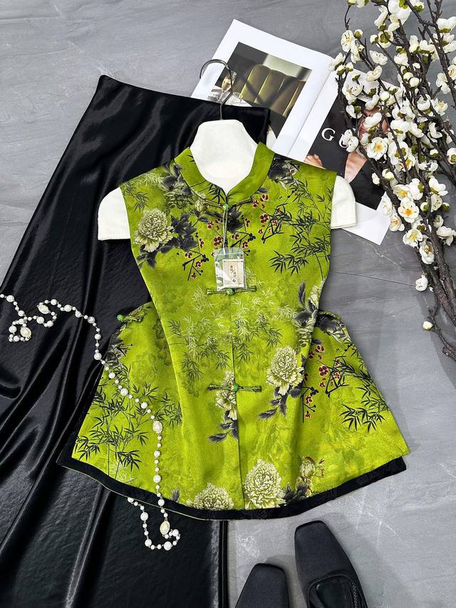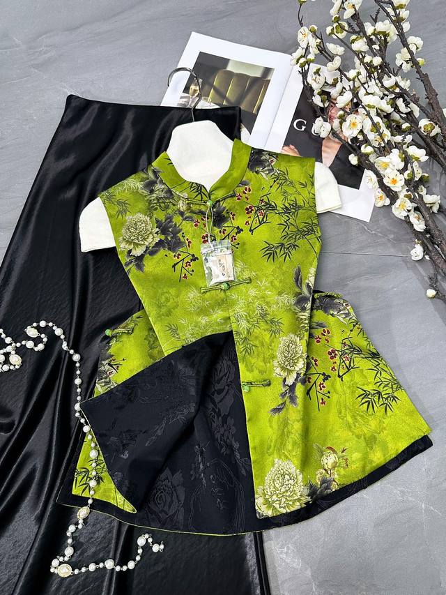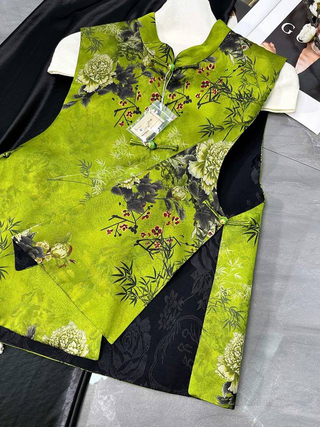 / New arrival New Chinese style double-sided hand-made buttoned jacquard vest Col