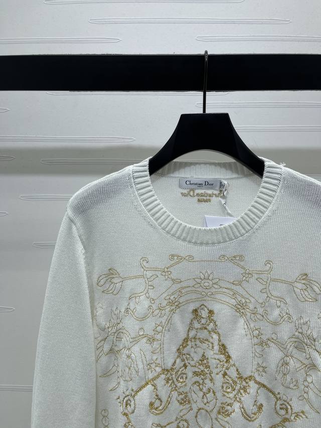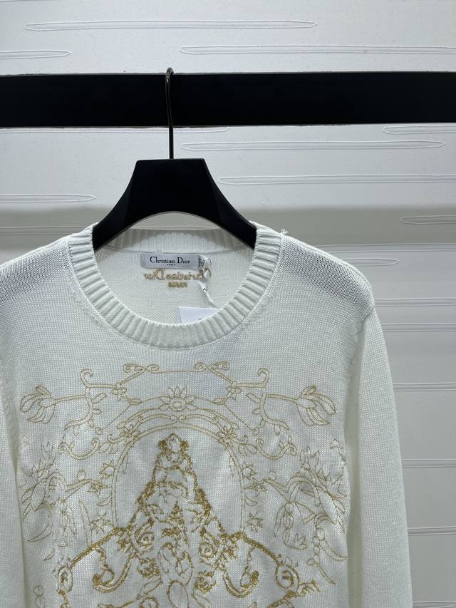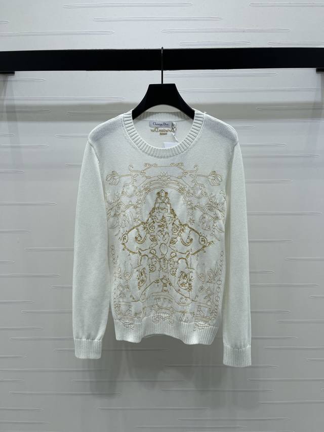 New Arrival! Original High-Quality Dio* 2025 Autumn/Winter Latest Collection! Crew Neck Embroidered Long-Sleeve Sweater! Made with premium wool yarn, this round neck long-sleeve sweater features a high-quality, comfortable, and soft feel. The wide ribbed trim on the neckline and cuffs echoes the hem. Large-area floral and leaf elements, along with crochet embroidery outlining a five-pointed star silhouette, highlight its high-end positioning and fashionable style. The regular fit with square shoulders creates an artistic atmosphere, making the style more timeless and versatile! 2 colors! Sizes SM-L3! High-quality bulk order.