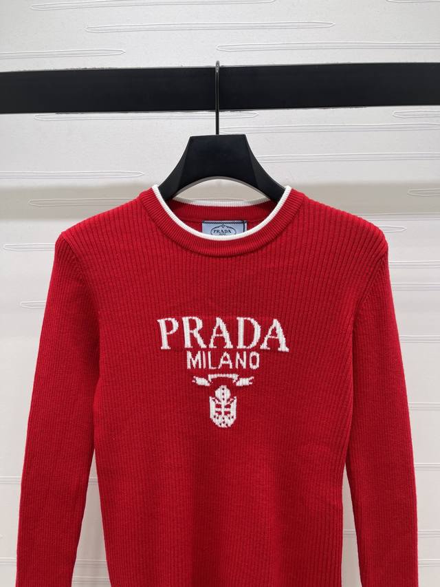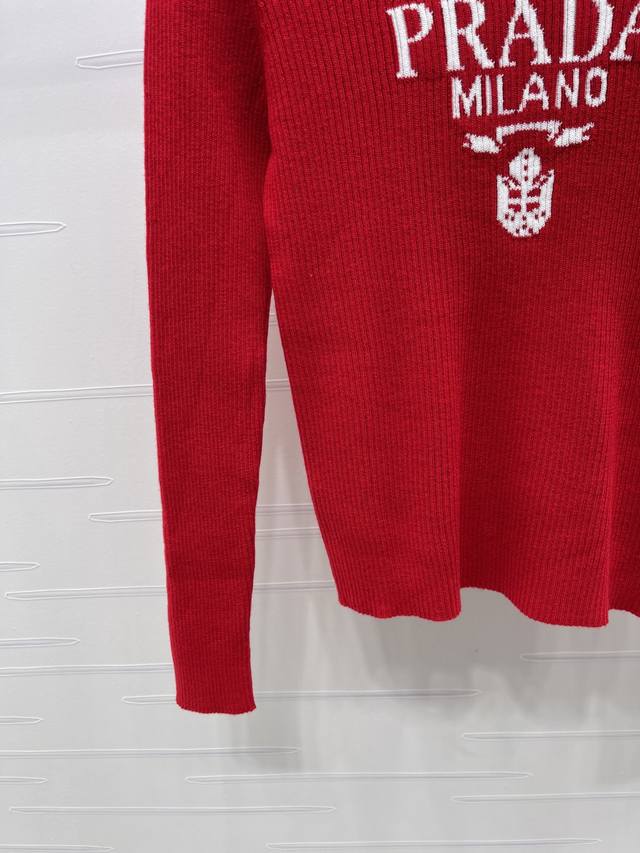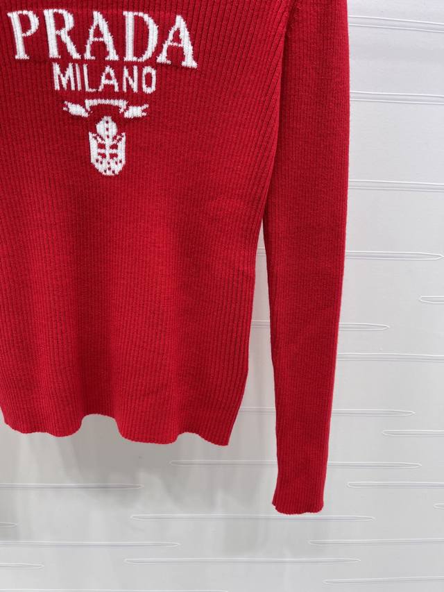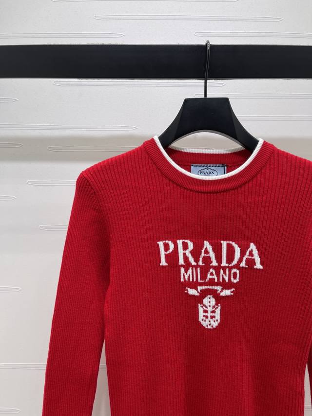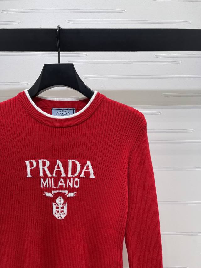 New Arrival! Original High-Quality Prad* 2025 Autumn/Winter Latest Collection! Slim Fit Knit Crew Neck Long Sleeve! Custom Wool Material, Comfortable Texture, Excellent Elasticity. Slim Fit Crew Neck Long Sleeve Cut. Contrasting Letter Logo on Chest Highlights Brand Style. Contrasting Color Slicing at the Neckline. Elastic Fit, Visually Slimming and Elongating Effect, Highlighting Feminine Curves. Stylish and Outstanding Whether Worn Alone or Layered! 3 Colors! Sizes SM-L3! High-Quality Bulk Item.