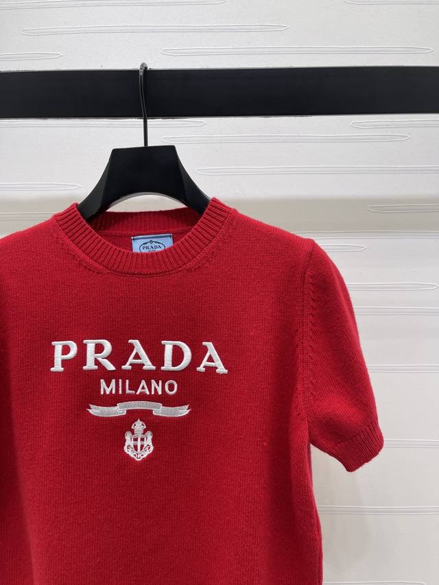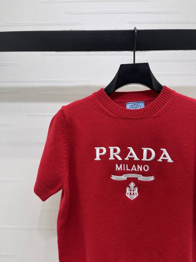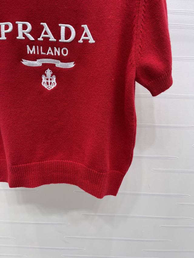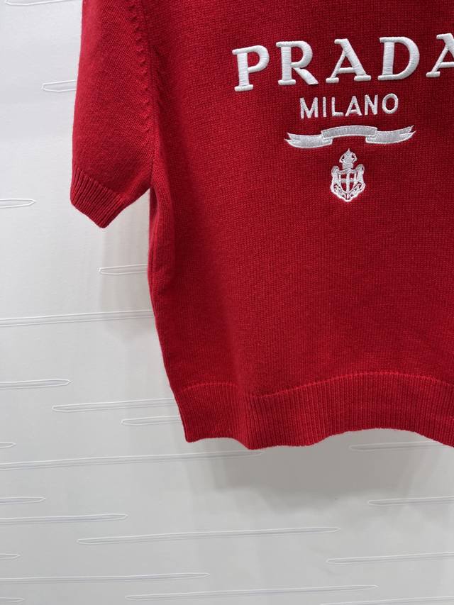 New Arrival! Original High-Quality Prad* 2026 Early Spring Collection! Crew Neck Embroidered Knit Short-Sleeve T-Shirt! Custom imported wool material, high-quality, comfortable and soft. Wide ribbed trim on the neckline and cuffs echoes the hem, adding a sense of style and layering. The iconic embroidered logo on the chest embellishes the design, showcasing the brand's style. The unique crew neck knit short-sleeve cut creates an artistic and versatile look. Available in 1 color! Sizes SM-L3! High-quality bulk order.