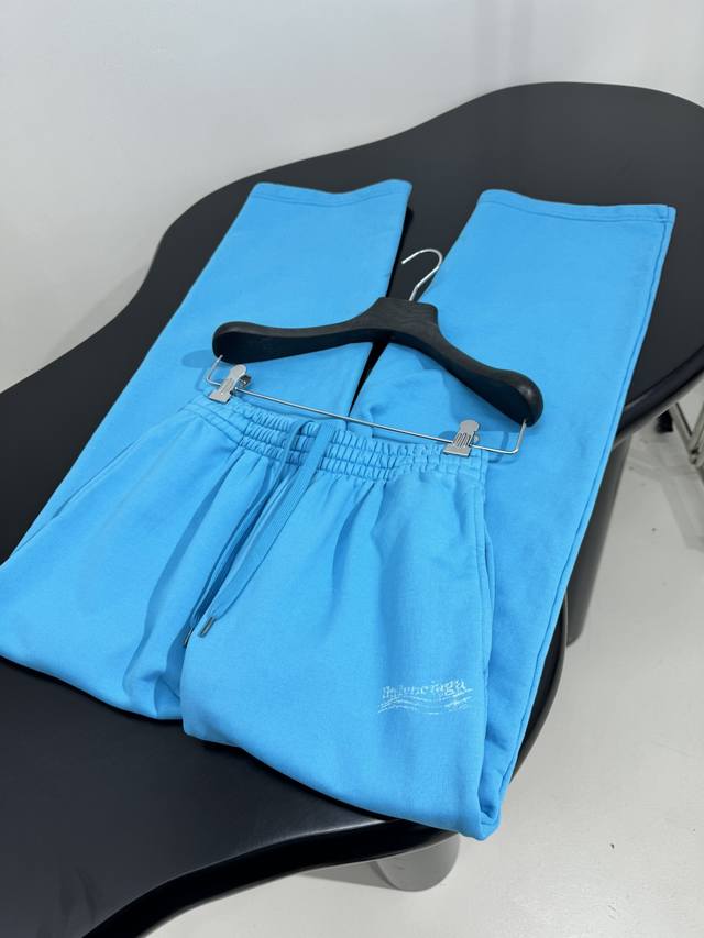 New Arrival: Political Stencil Track Pants. Custom blue plain knit fabric. Medium fit. Tie-dye print with Political Stencil logo on the front. Washed and faded effect. Adjustable drawstring elastic waistband. Straight leg fit, unisex. Can be mixed and matched. : Blue : :