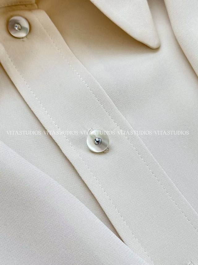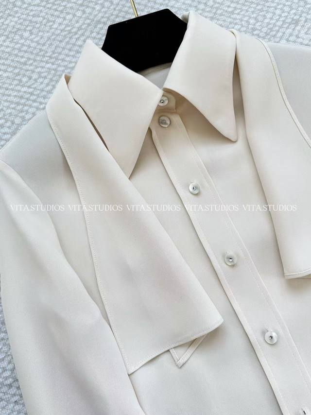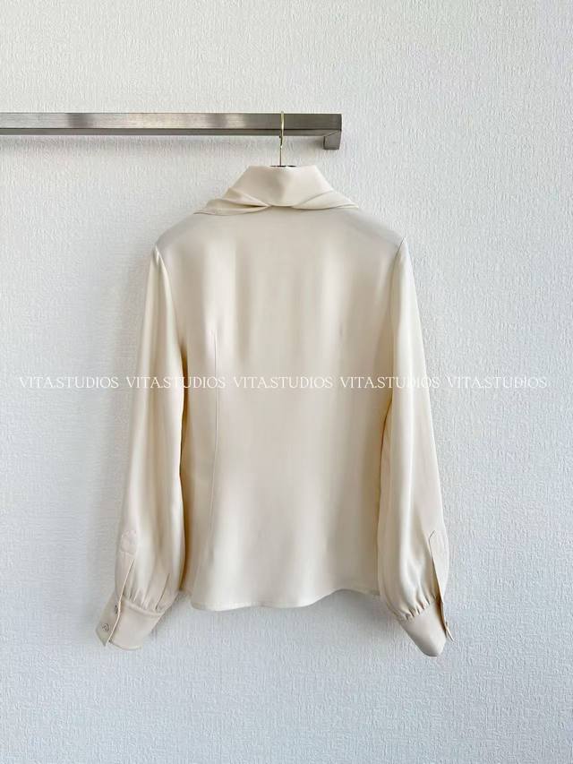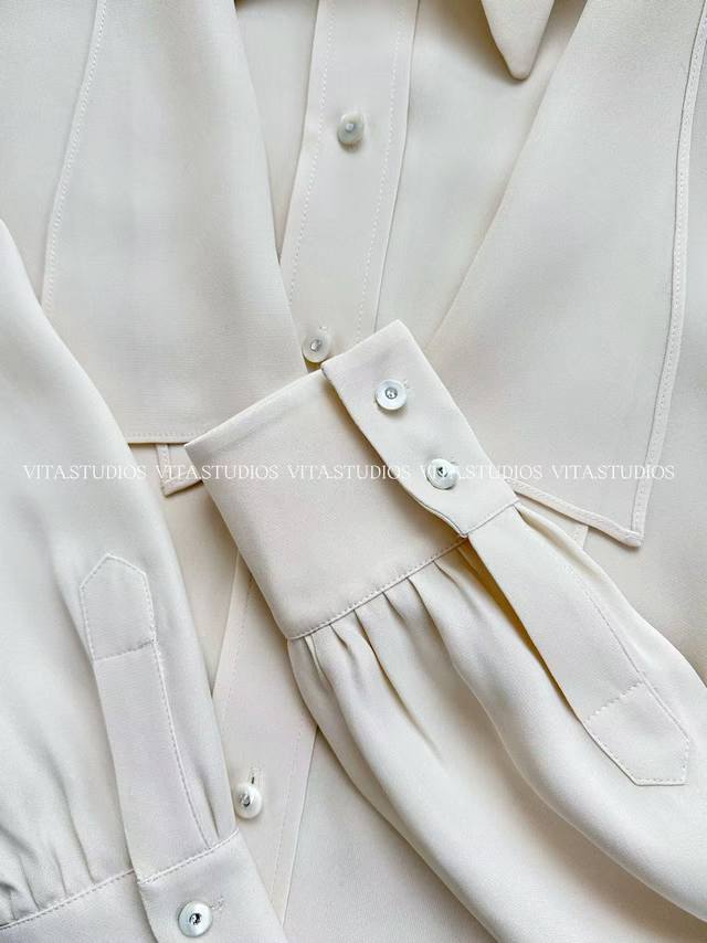 New Arrival Pre-sale DDD Silk Long-Sleeve Shirt Ddd Made of 100% silk fabric, with a smooth, draping satin sheen Ddd Skin-friendly and comfortable, breathable and luxurious Ddd Collar comes with a matching fabric tie, adjustable knot Ddd Decorative details soften the shirt's formality and add an elegant touch Ddd Sleeves have a relaxed fit with gathered cuffs Ddd Flattering for the arms and creating a more dynamic look Ddd Custom shell buttons are featured at the front, center, and cuffs Ddd The sheen echoes the silk fabric, enhancing the exquisite details DDD Color: White Ddd Sizes: S, M, L Ddd V*Cy DDD