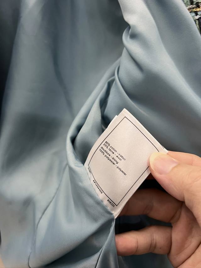 New Arrival Recommendation: 25A Handcrafted Series Heavy-Duty Blue Mosaic Tweed Jacket with Hand-woven Trim, Round Neck, Four Pockets, Hardware Accessories. Elegant and sophisticated, perfect for socialites and heiresses. Sizes: Sml,