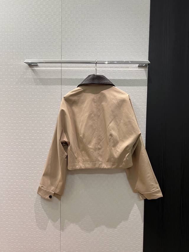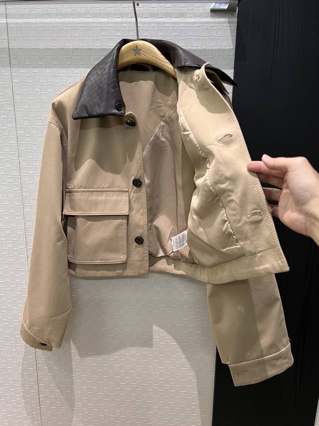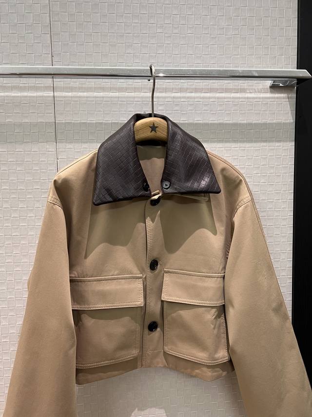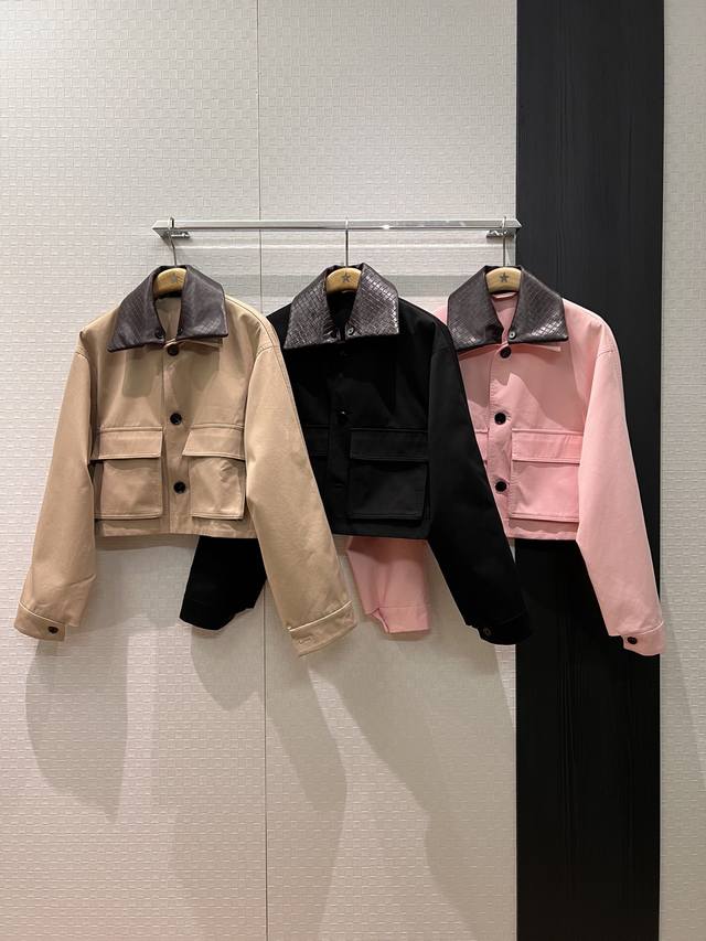 New Arrival Recommendation: Bv woven leather collar short jacket, removable leather collar for two-way wear, large side pockets, loose fit, casual, stylish, youthful, khaki, black, pink, S/M/L, D/D