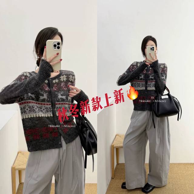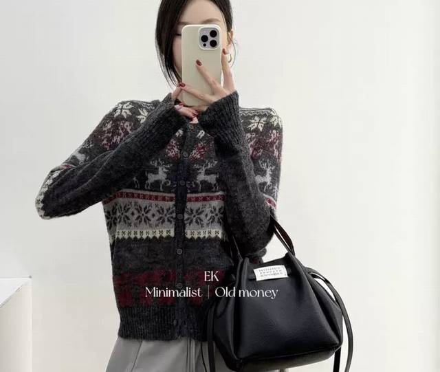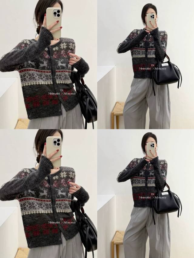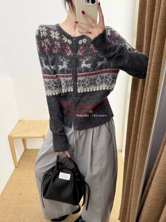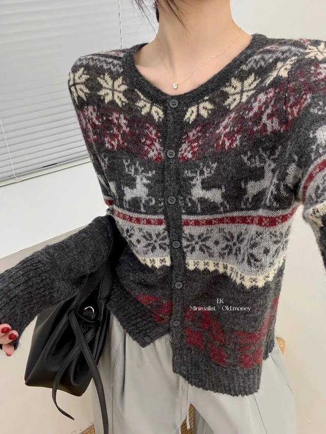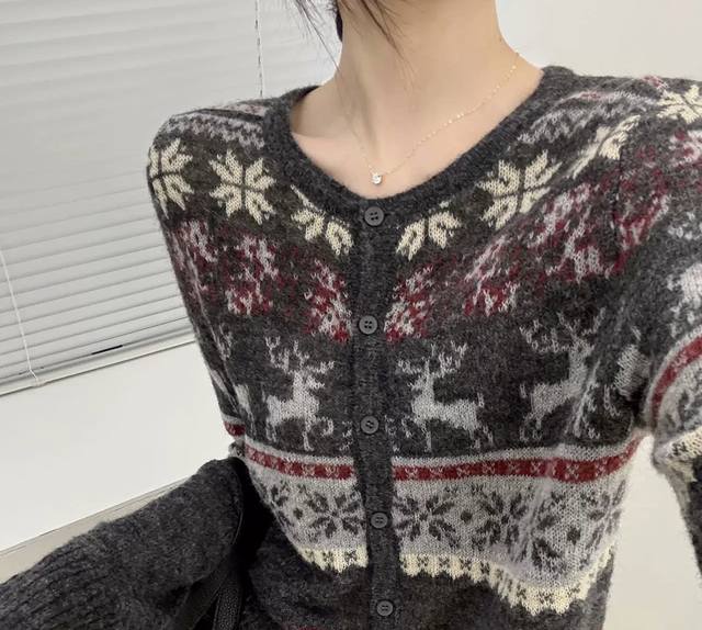 New autumn and winter Fair Isle retro wool blend Christmas jacquard round neck