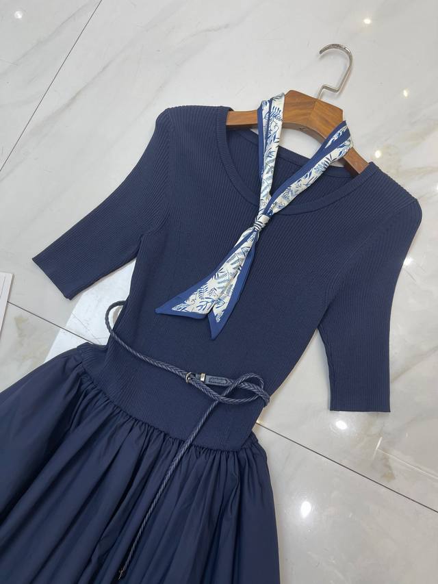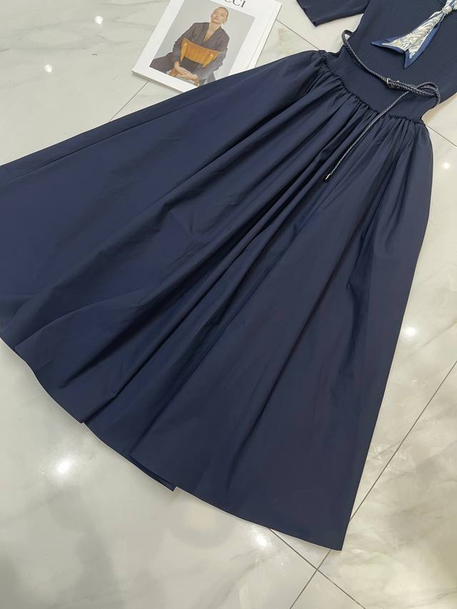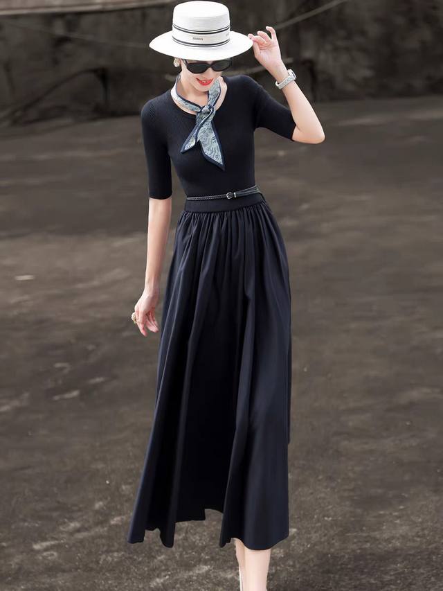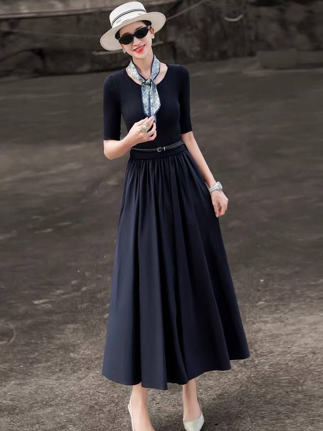 New autumn and winter ice silk knitted spliced cotton fabric, soft and delicate with good drape, knitted with great stretch, elastic waist version is super good, showing a thin waist with a silk scarf and belt black navy blue
