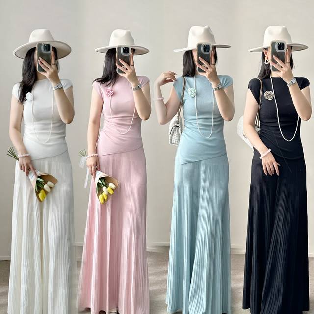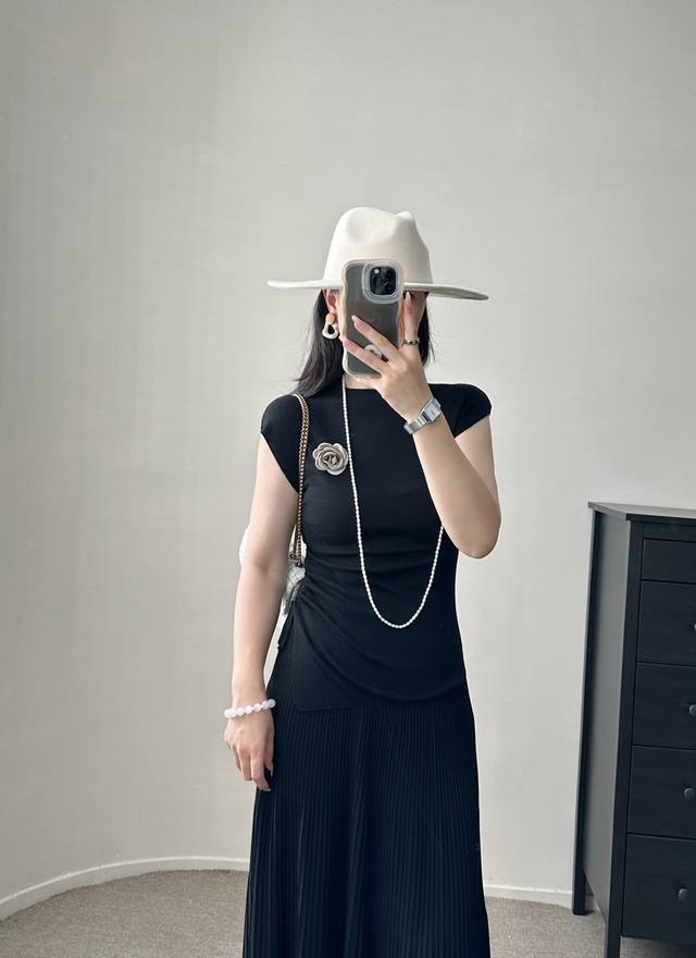 / New autumn style French temperament pleated Tencel top high waist skirt suit On