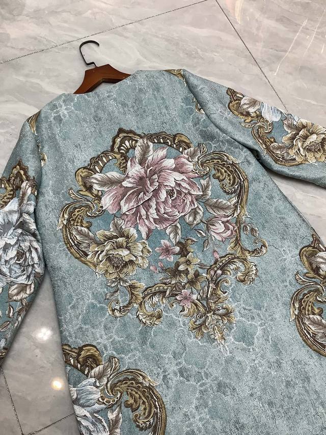 New Autumn/Winter Style: Embossed Jacquard Gradient Custom Fabric! Super Stylish and Elegant Long Coat! Blue Size: Smlxlxxl DDD