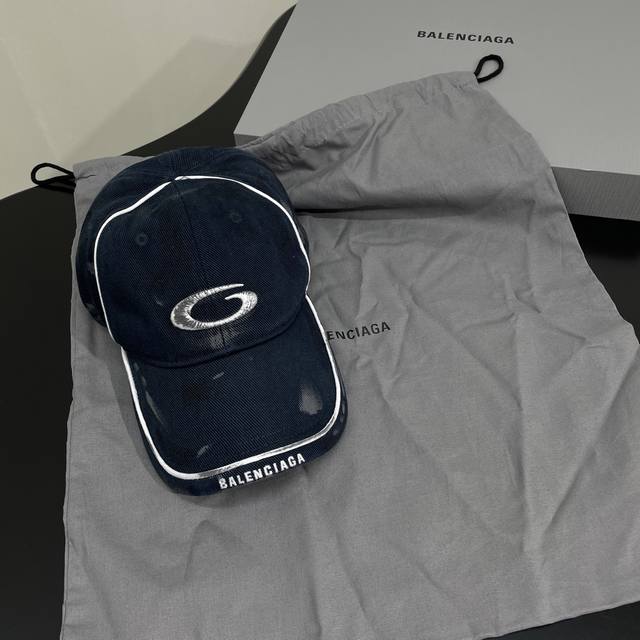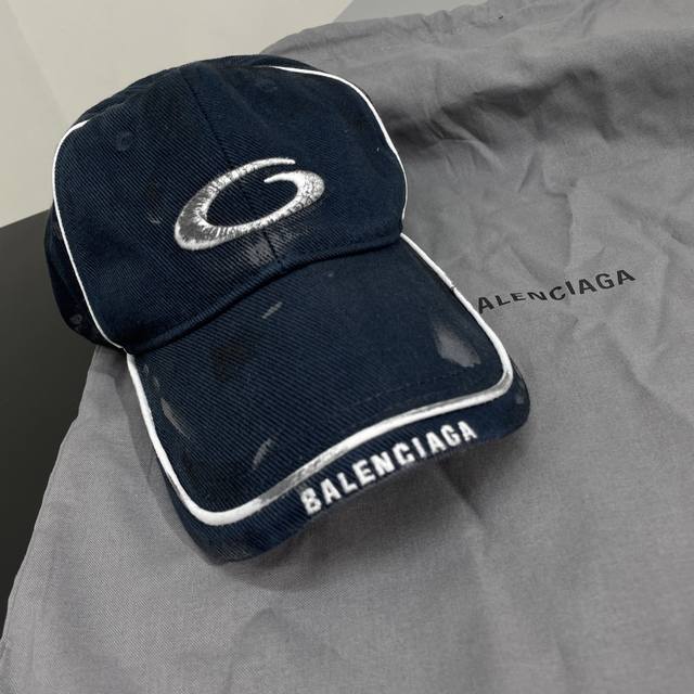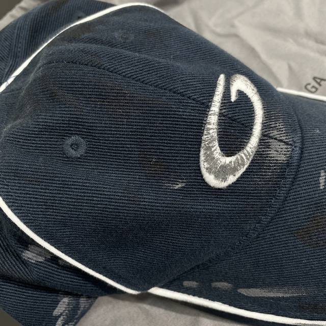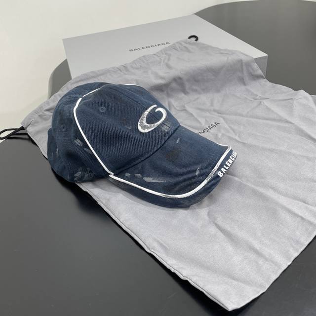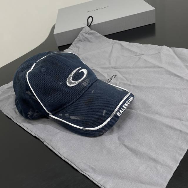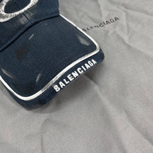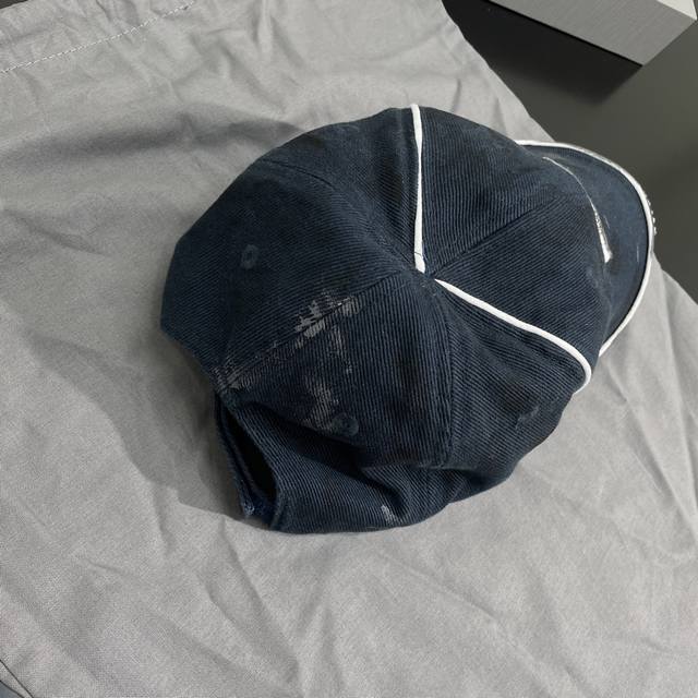 New Basketball Series Baseball Cap. Made of cotton twill fabric. Classic baseball cap design. Embroidered ventilation eyelets on the top. Adjustable Velcro closure at the back. Embroidered basketball artwork on the front. Embroidered brand logo on the brim. Frayed edges with artwork and logo. Distressed finish with graffiti detailing. Unisex. Dark blue. (F)