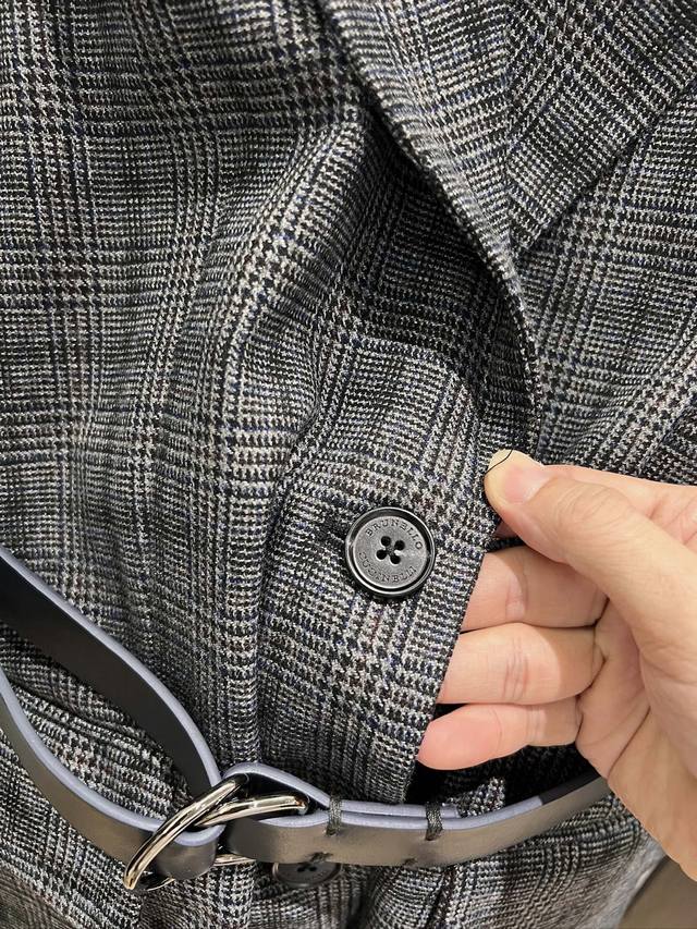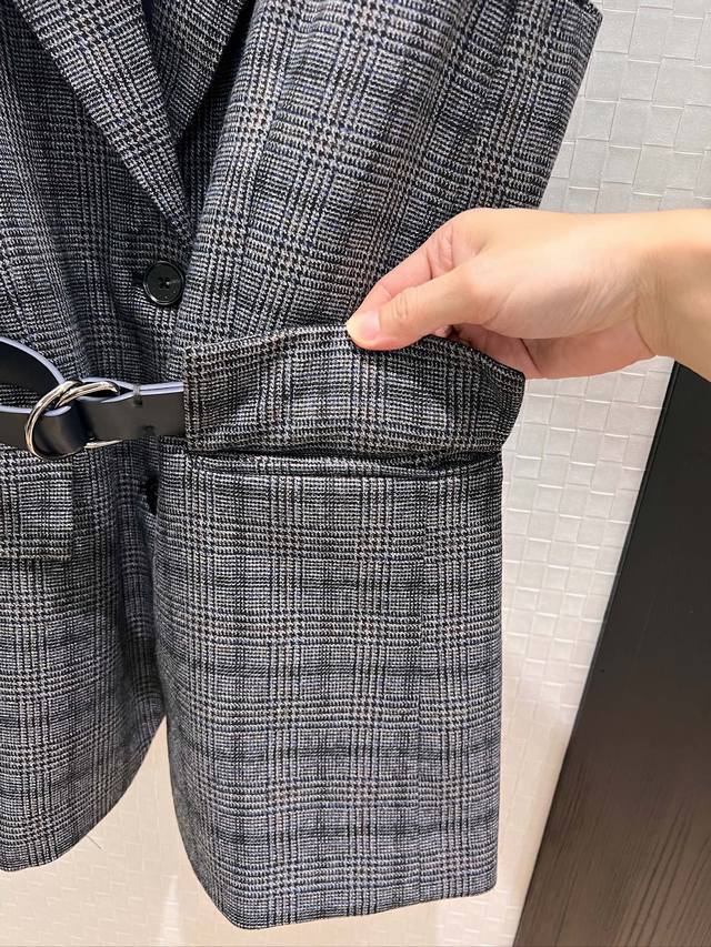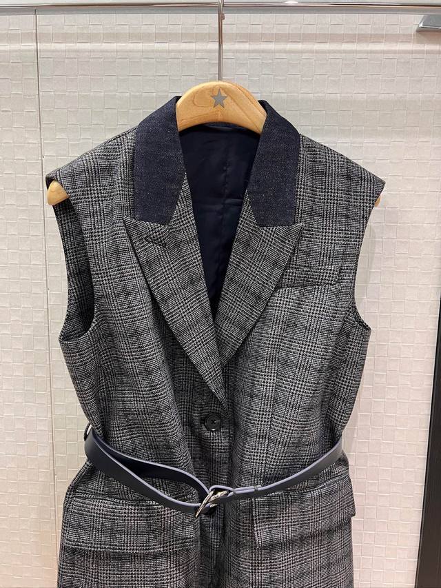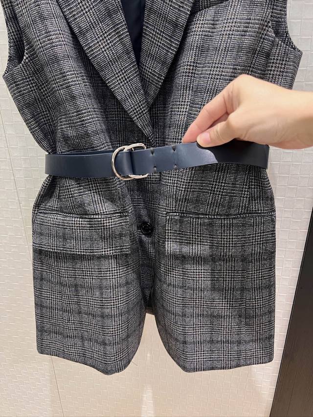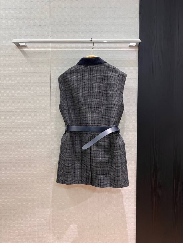 New Bc denim patchwork suit collar plaid wool vest jacket with belt decoration, stylish and handsome temperament, versatile wool blend, can be paired with the same plaid trousers Sml