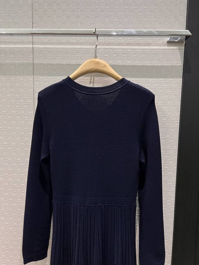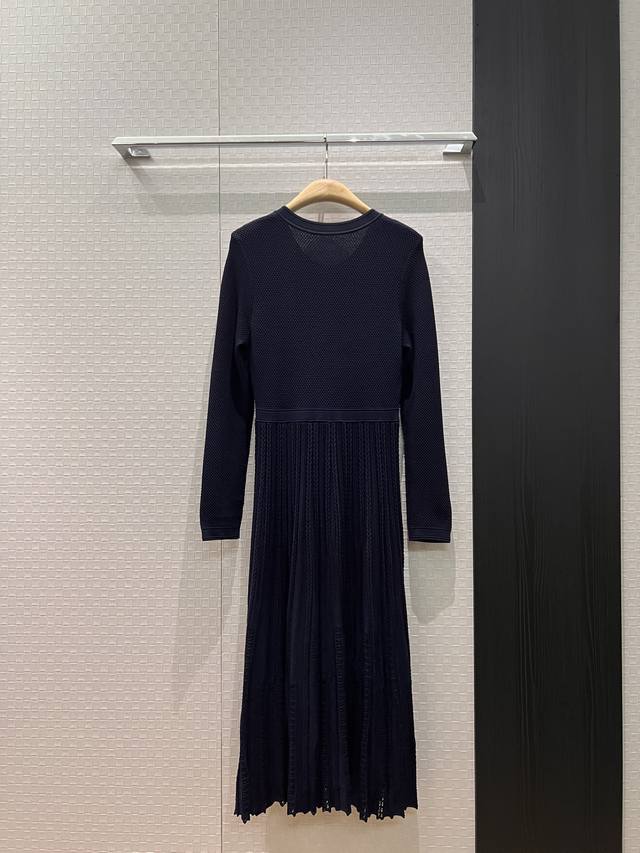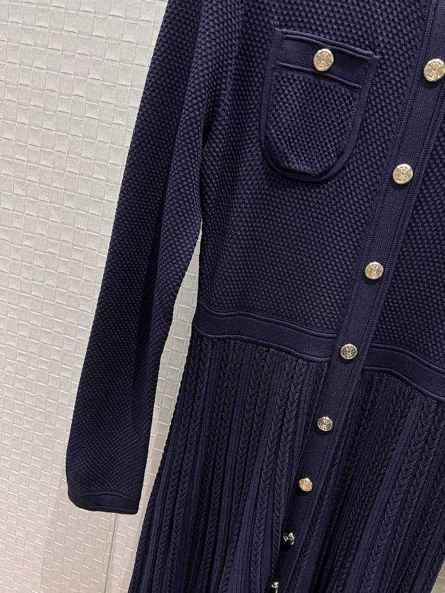 New cable knit pleated patchwork long-sleeved dress, long skirt, molded, gold button decoration, slim fit, simple, suitable for commuting, can be worn alone or as an outer layer, black, dark blue, beige, Sml,