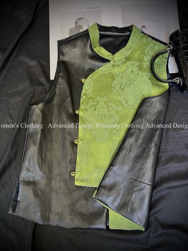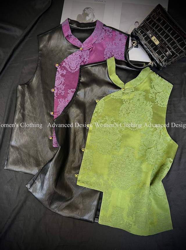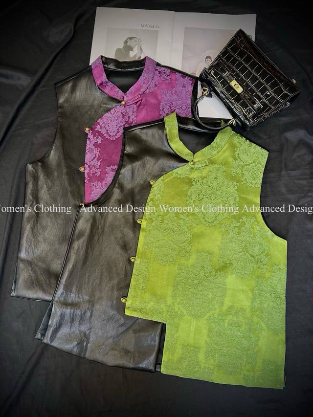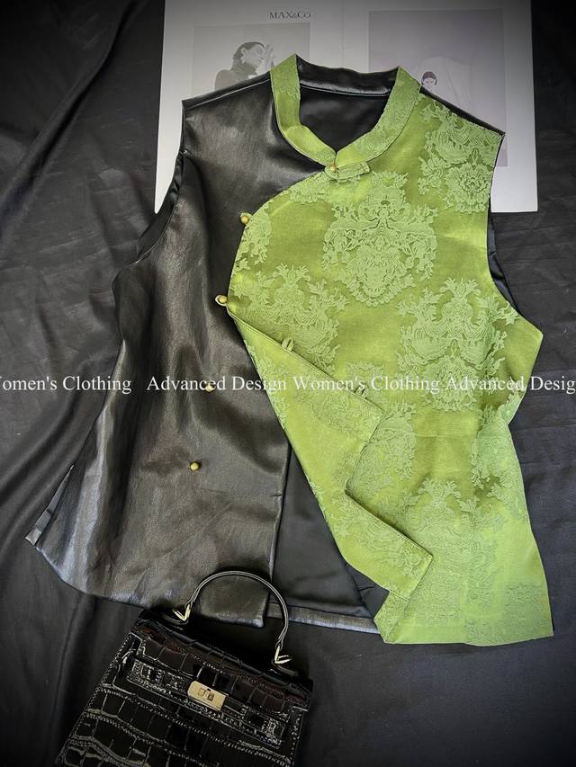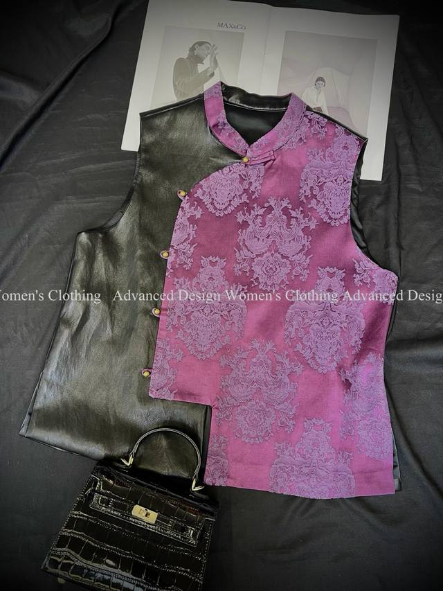 New Chinese retro Zen-style silk jacquard patchwork leather vest. A new Chinese vest with a very ancient and elegant style. The texture is exquisite and complex. The embossed jacquard is full of rhythmic colors. 2 colors Smlxl
