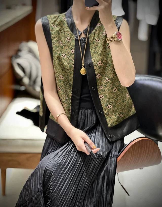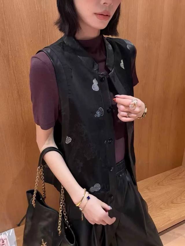 New Chinese style stand-up collar gourd embroidery double-sided vest, simple yet solemn and neat, capable temperament reveals a hint of implicit and restrained oriental charm, loose fit will not be too dragged out, classic and smart charm Smlxl