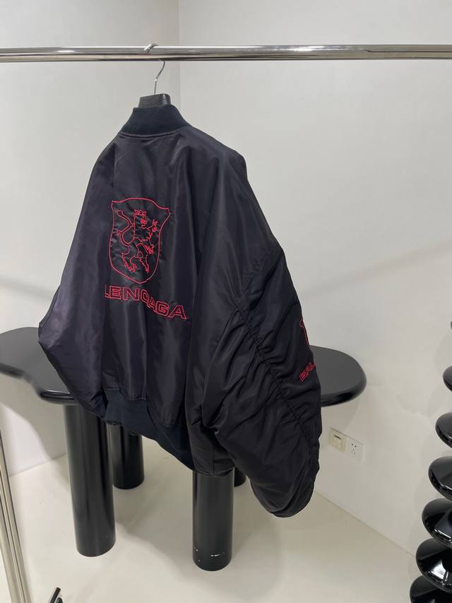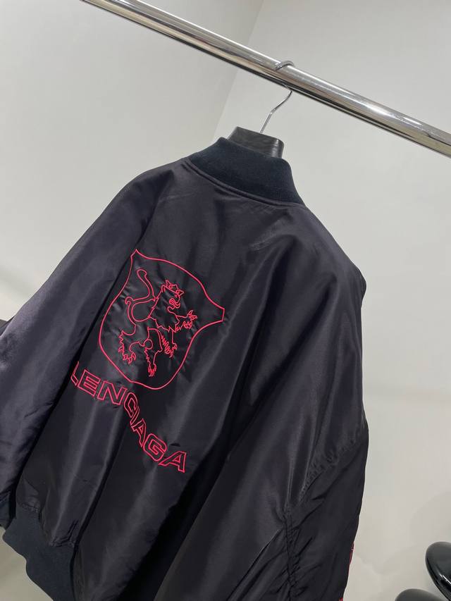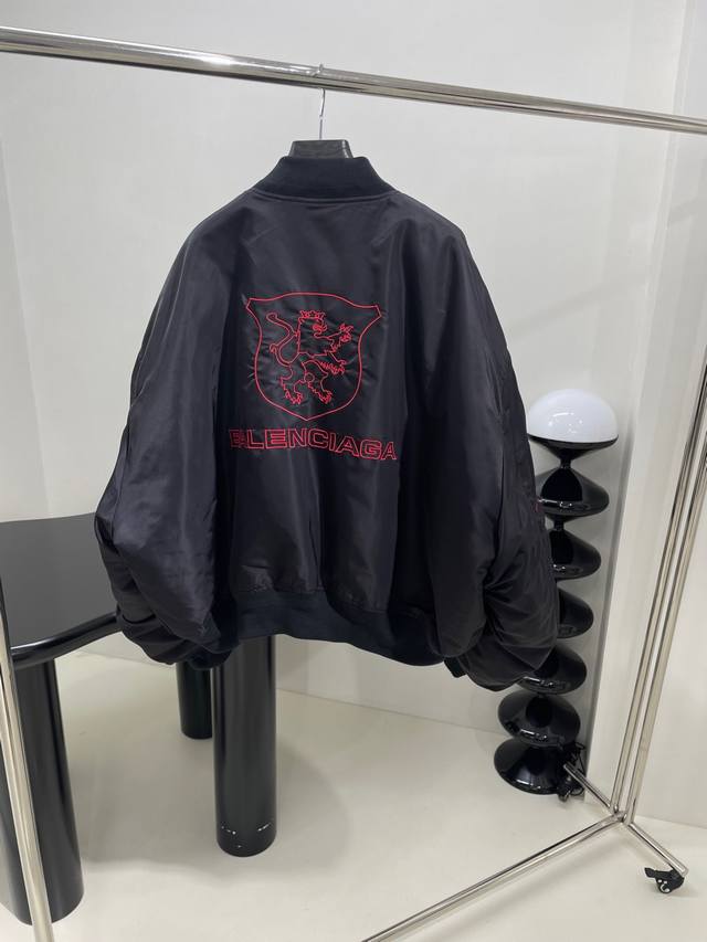 New City Series Lion Club Bomber Jacket Nylon Cotton Coat DDD Selected glossy nylon fabric, large fit, quilted DDD Two snap-button flap pockets on the front DDD Ribbed details on the neck, wrists, and waist DDD Red Lion Club artwork embroidery on the front and back DDD Relaxed fit, unisex DDD : Black DDD : DDD