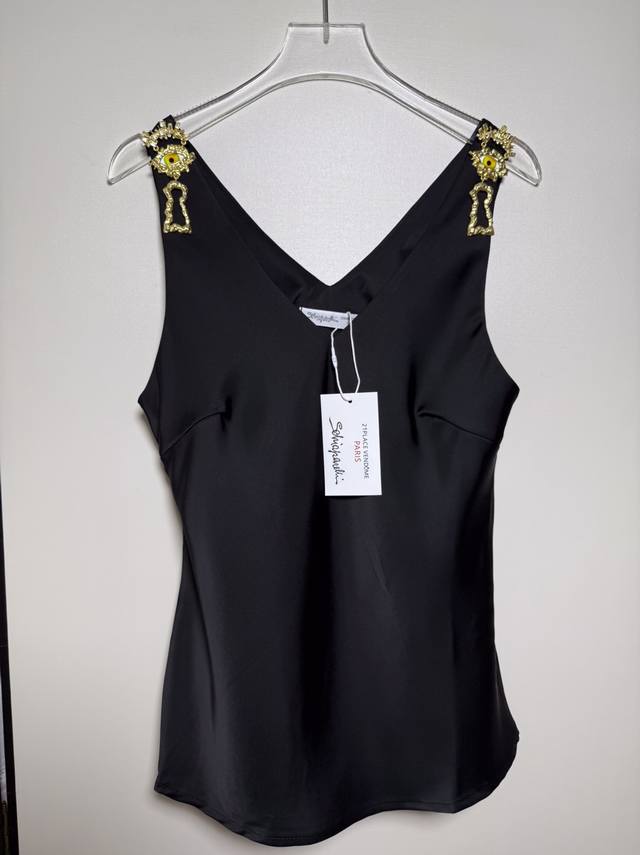 / New custom metal buckle brooch detachable decorative V-neck sleeveless vest top