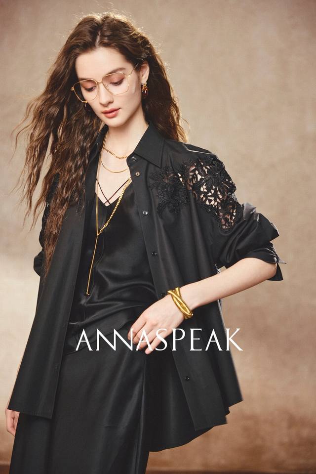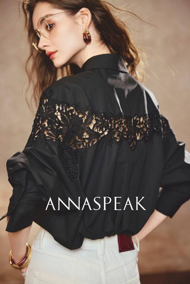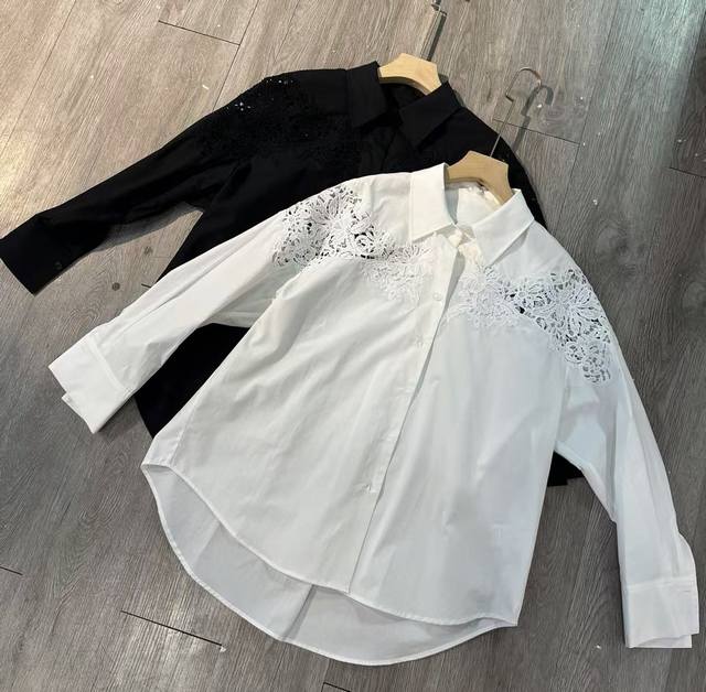New designer French retro organic long-staple cotton heavy hollow embroidery lace long-sleeved shirt black and white Sml