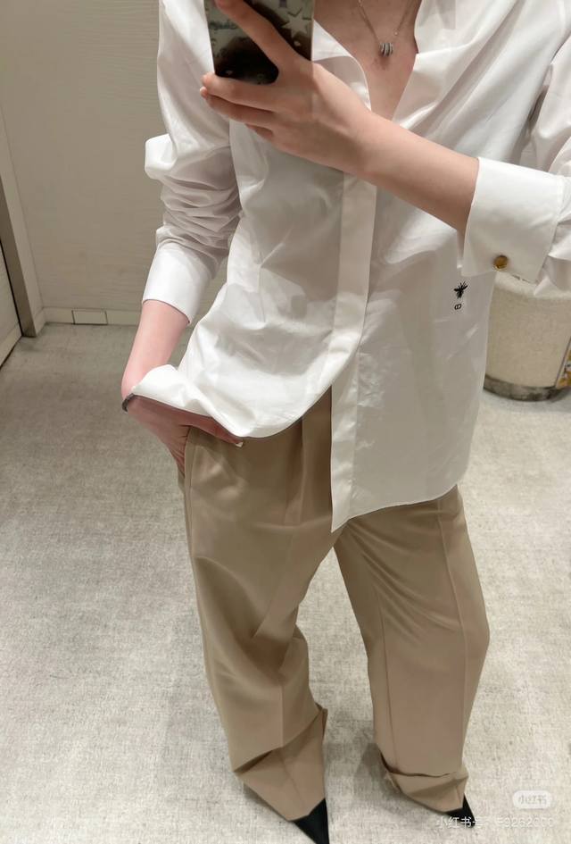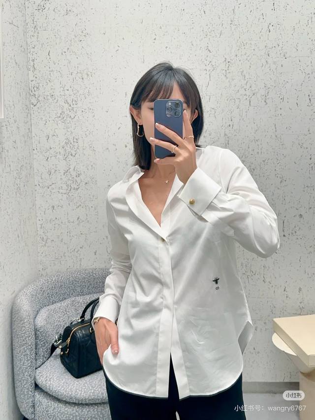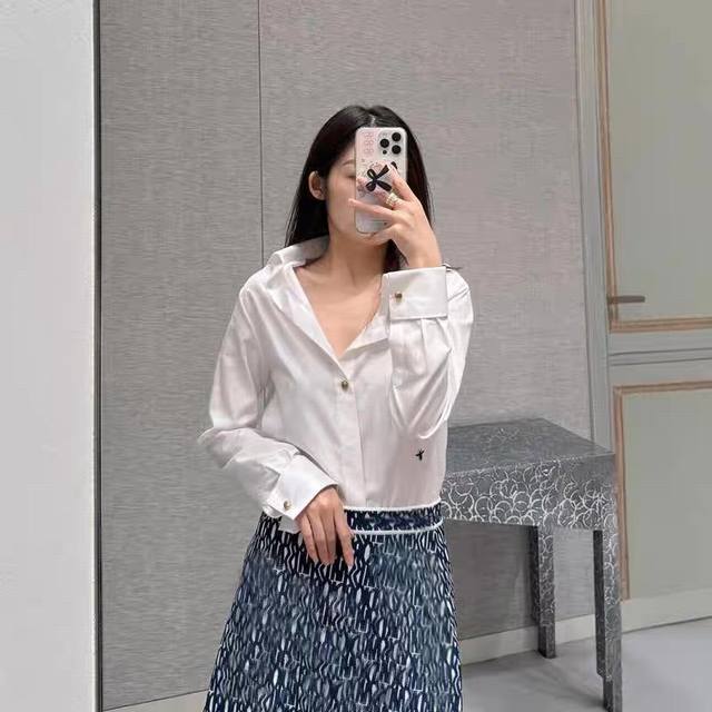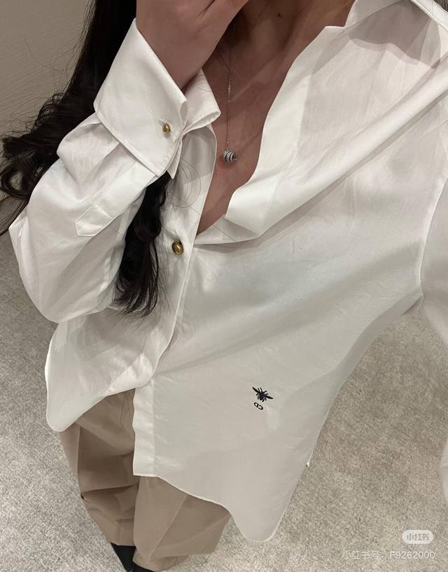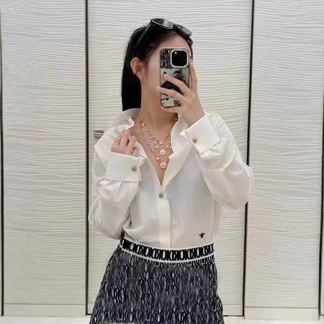 New Dior Solid Color Bee Embroidered Off-Shoulder Blouse (
