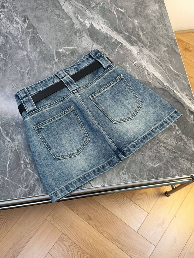 New early autumn model: Mm letter belt denim skirt, customized denim material, multi-washed fabric, soft and comfortable to wear, inclusive and fashionable, high-waisted skirt with a modified waist and hip shape, more tolerant to the body shape, and the details can better show the brand's high-end sense, and the outfit is full of youthful color. Smlxl