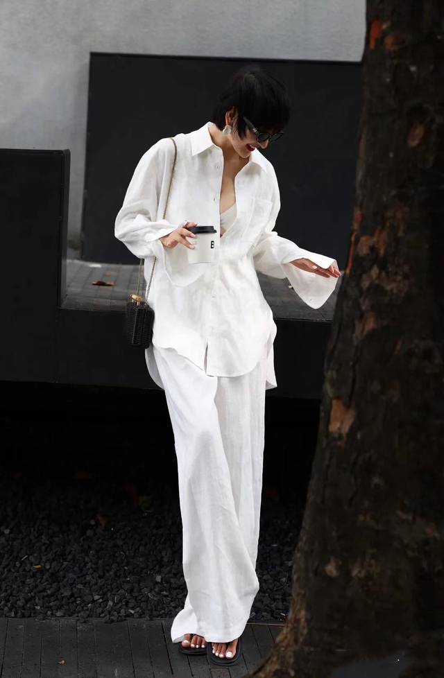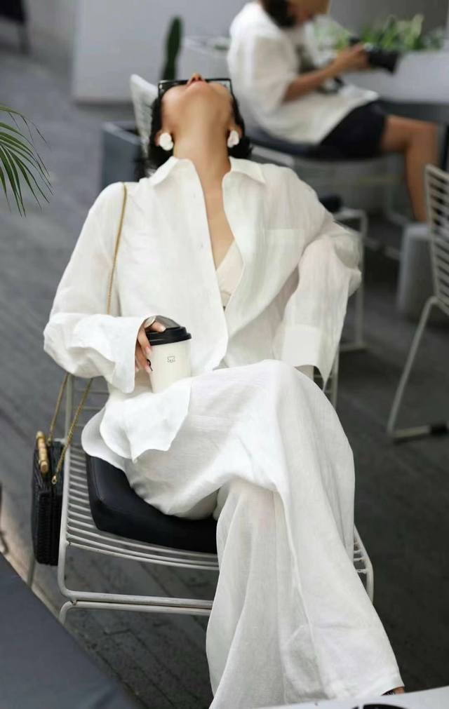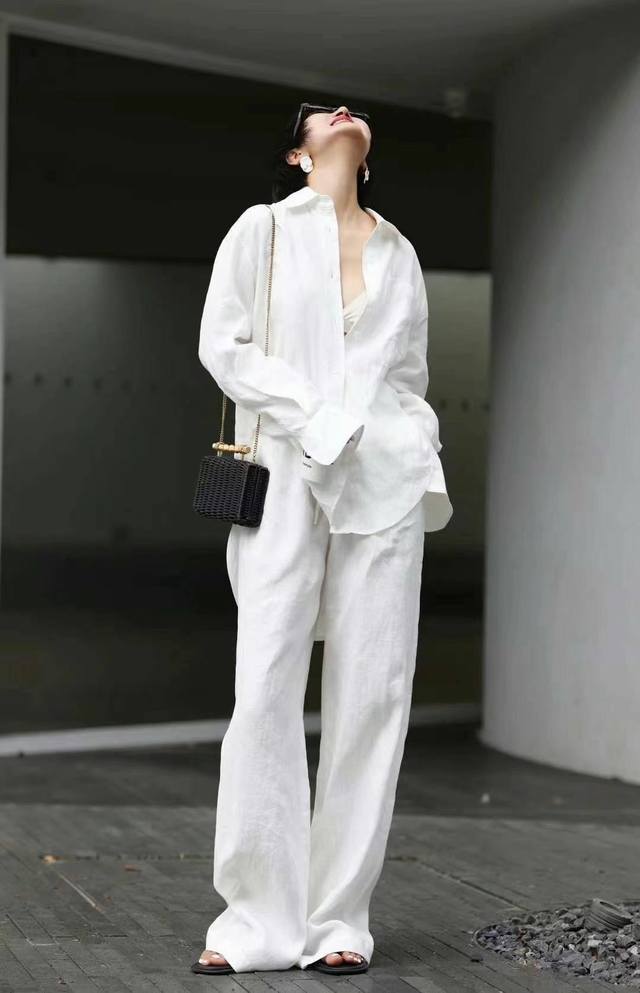 New early fall recommendations, a very stylish linen suit. Made from 100% pure linen fabric, it has a high thread count and fine sand, making it softer and thinner than traditional linen. Linen is known as a "natural air conditioner" with high moisture absorption properties, sweating without being sticky, and a return to the natural style. Natural, organic, green, and environmentally friendly, it gives you a healthy wearing experience. The surface is covered with natural hemp straw, which is normal. It makes you look thinner, taller, and longer legs, and whoever wears it will look beautiful Smlxl