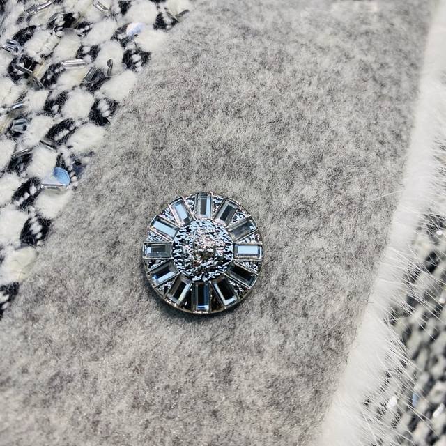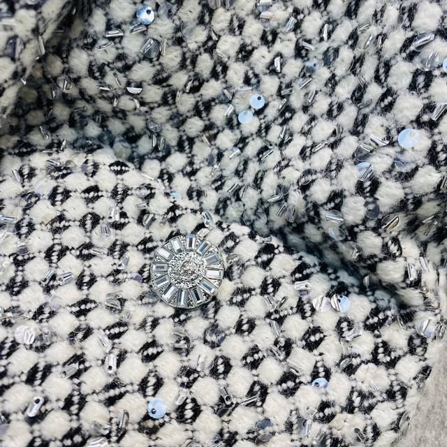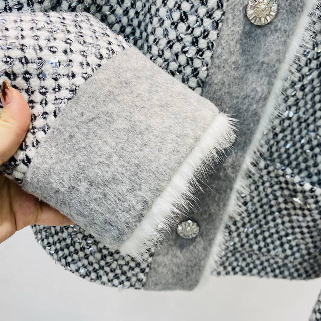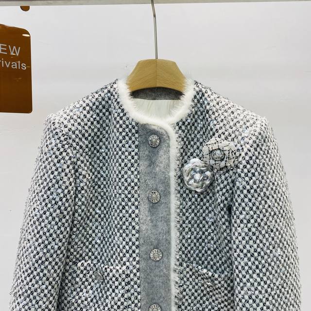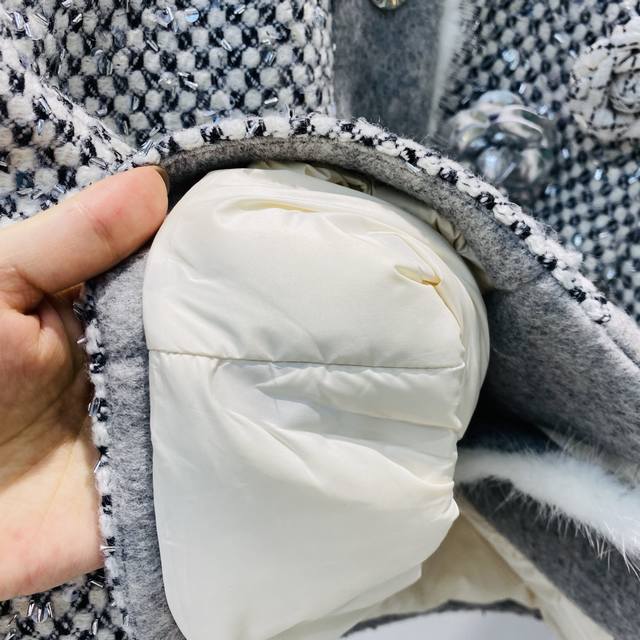 New Elegant Romantic Heiress Exquisite Heavy-Duty 3D Flower Decoration Fur Collar Trim Sequin Woven Tweed Down Jacket Top Sml DDD