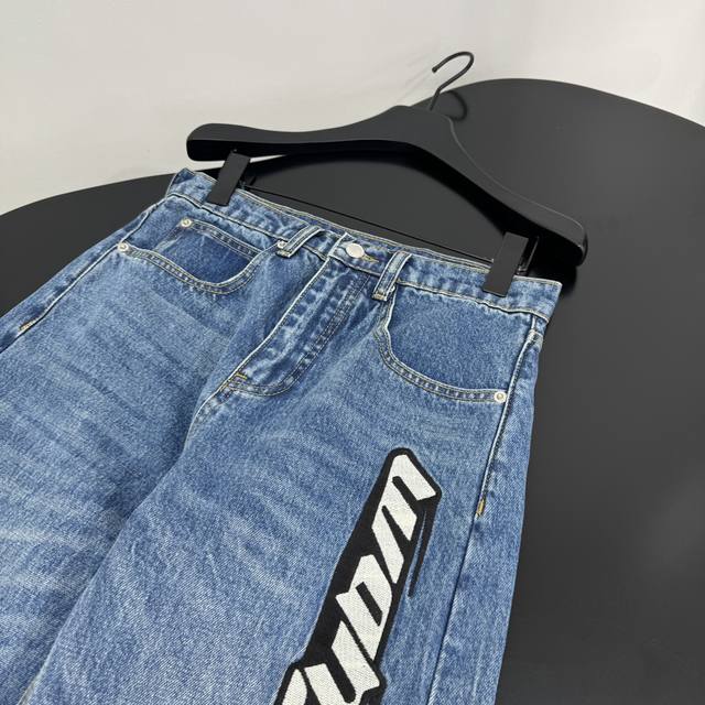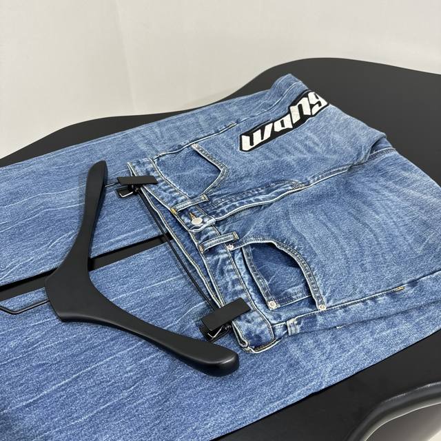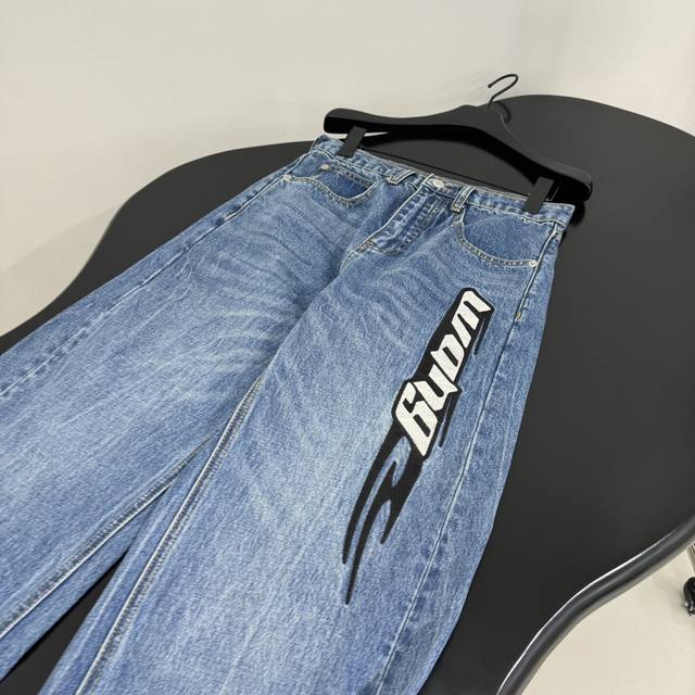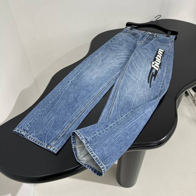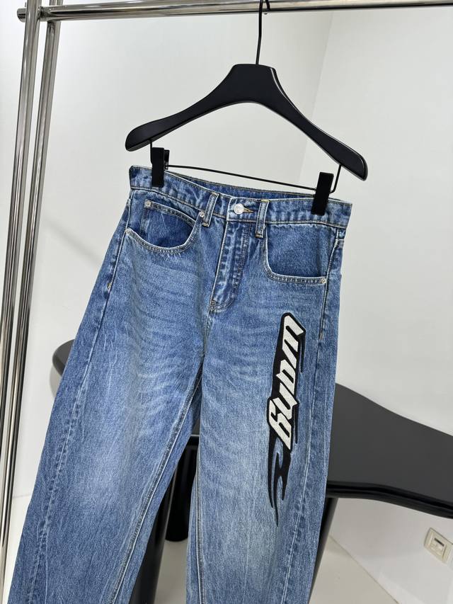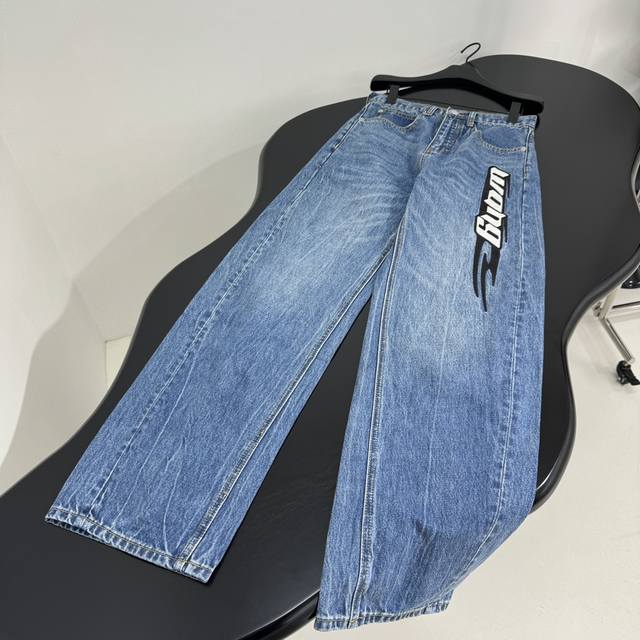 New Embroidered Logo Jeans DDD Made of washed denim DDD Featuring a distressed, creased texture DDD Brand logo on the left side DDD Leather patch on the back waistband DDD Side seam design DDD Unisex DDD Denim Blue DDD Sizes S M L DDD