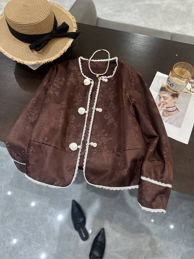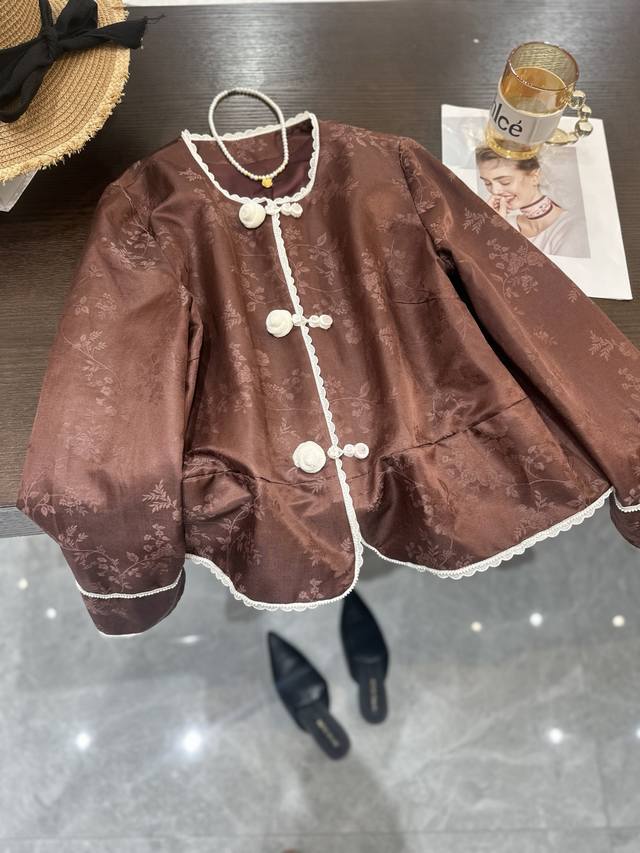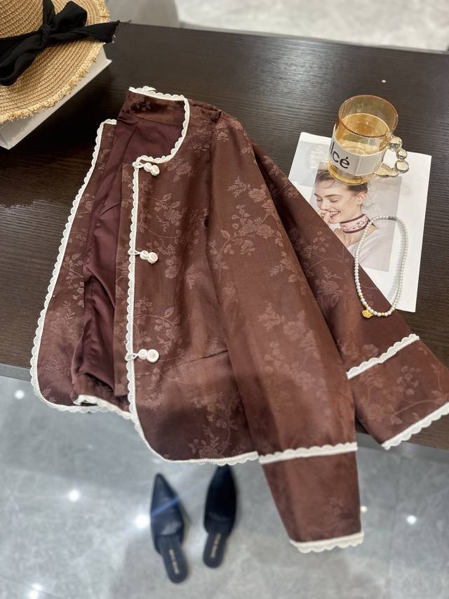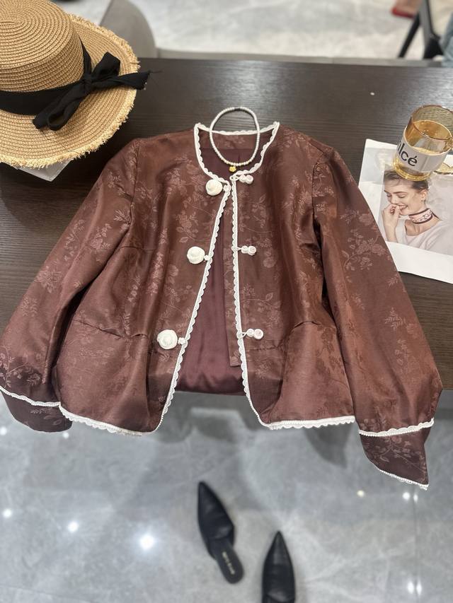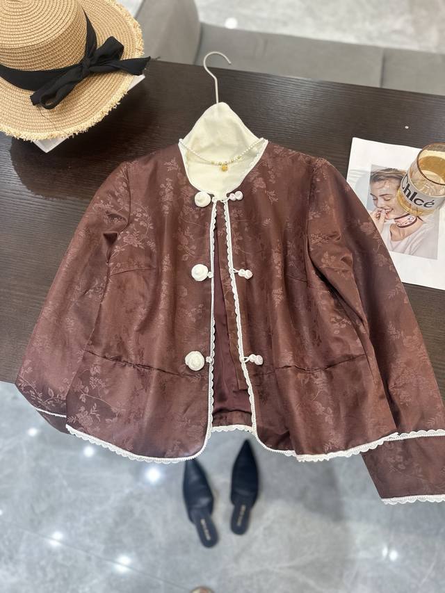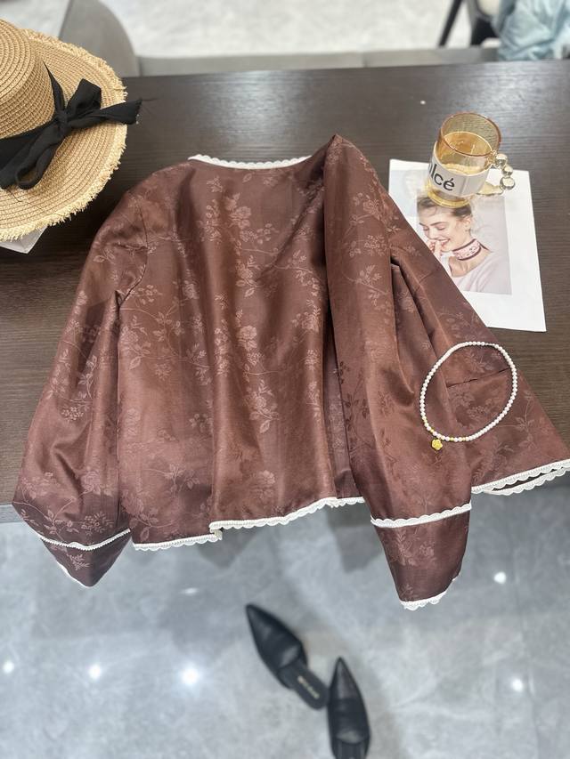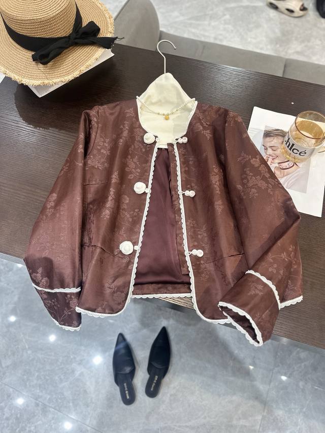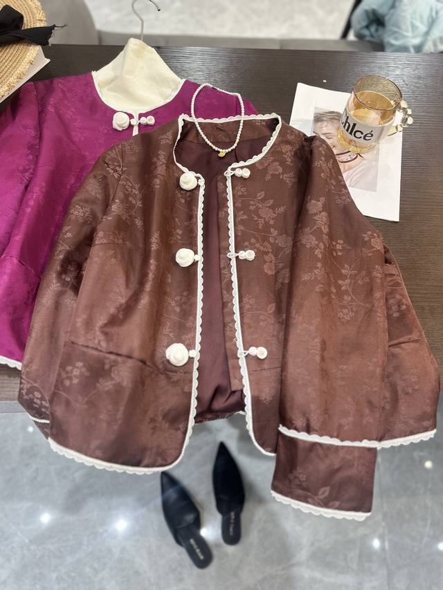 / New exclusive original design, silk wool jacquard jacket. Coffee, rose red. Mlx