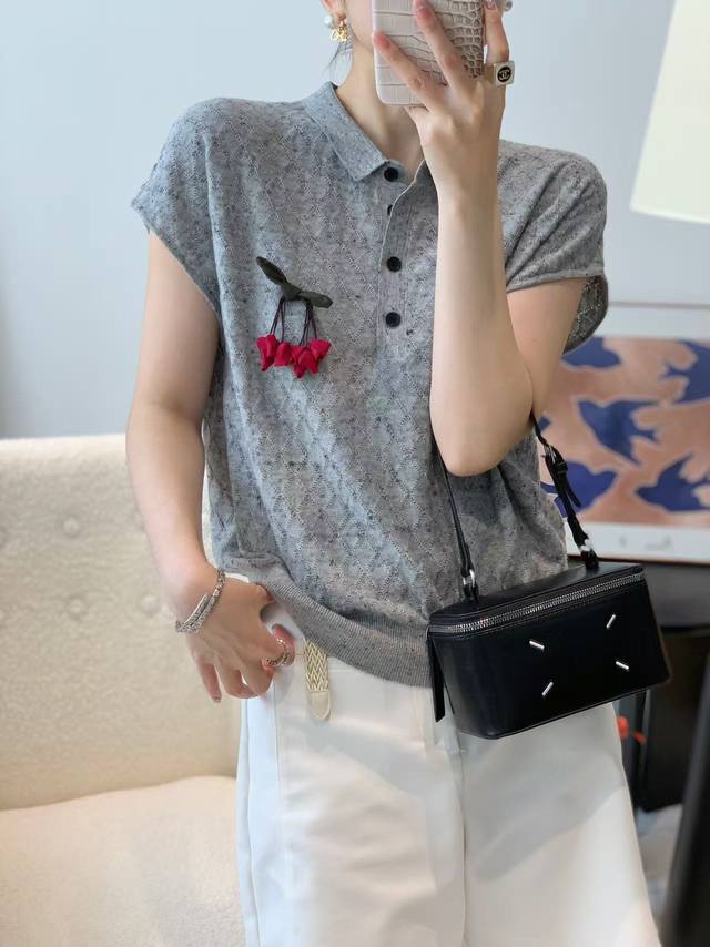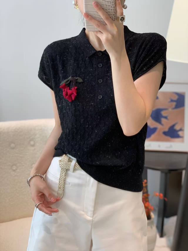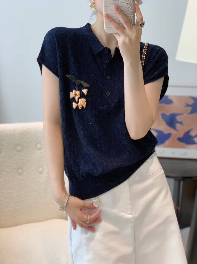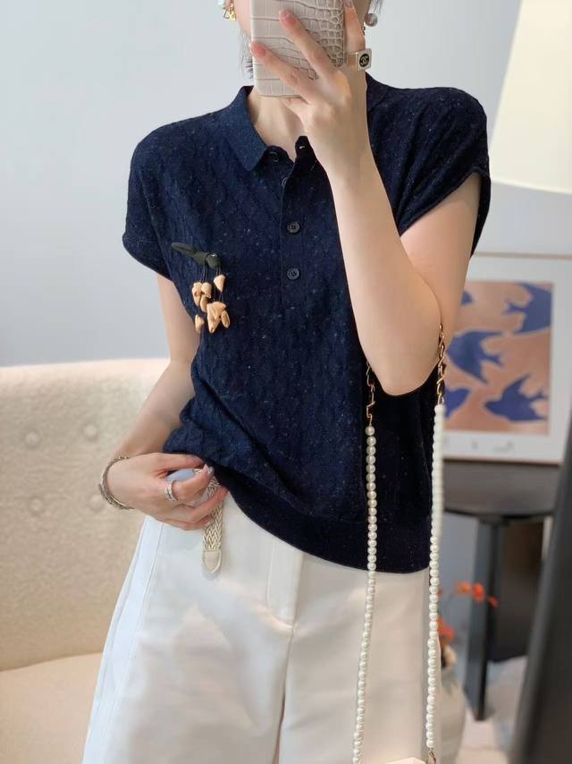 New fashion temperament lapel embroidered three-dimensional flower wool sweater