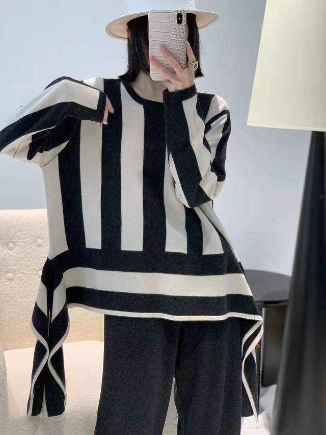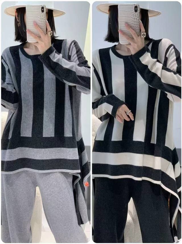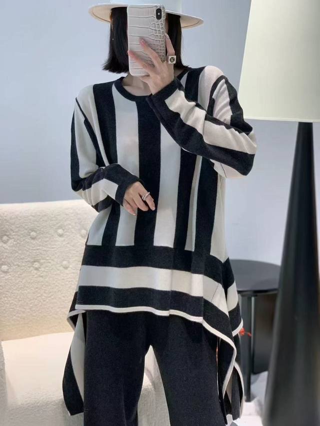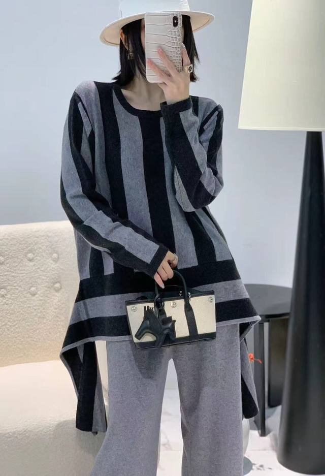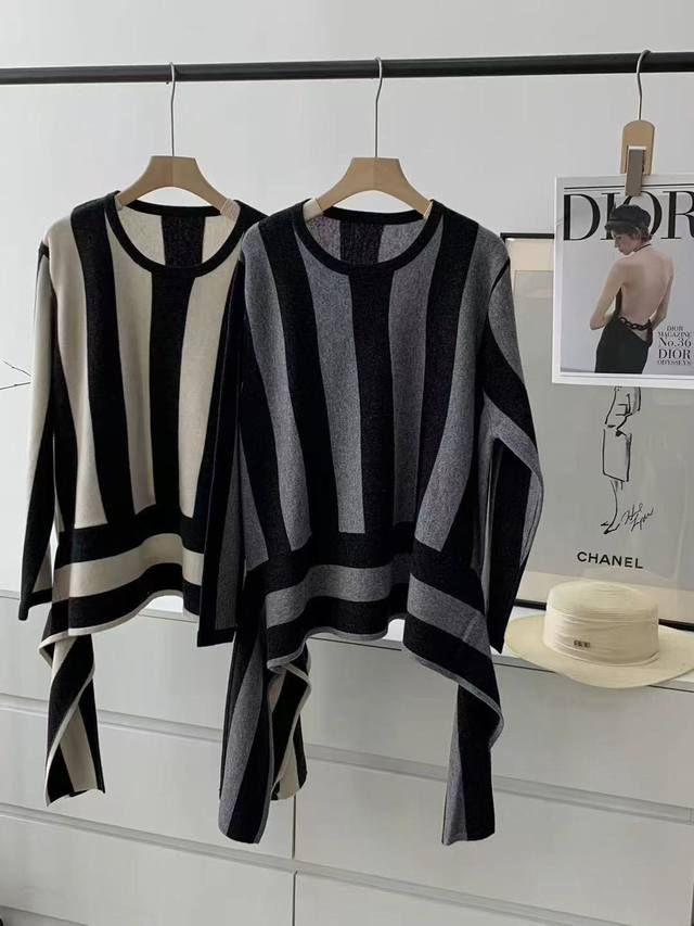 New full wool vertical striped round neck pullover long sleeve One size