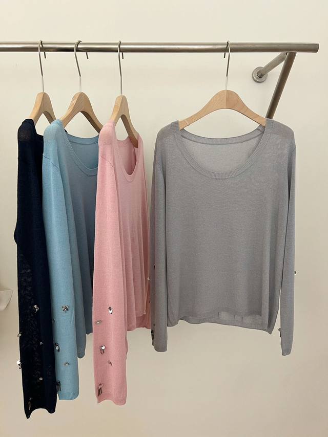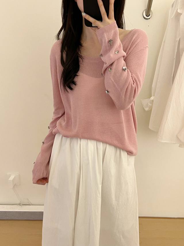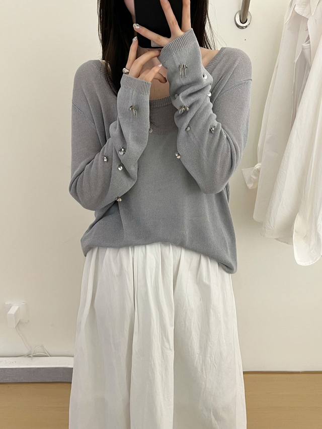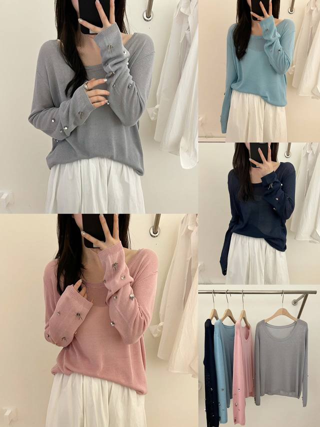 / New hand-sewn sequined sunscreen long-sleeved T-shirt and paper yarn one size D