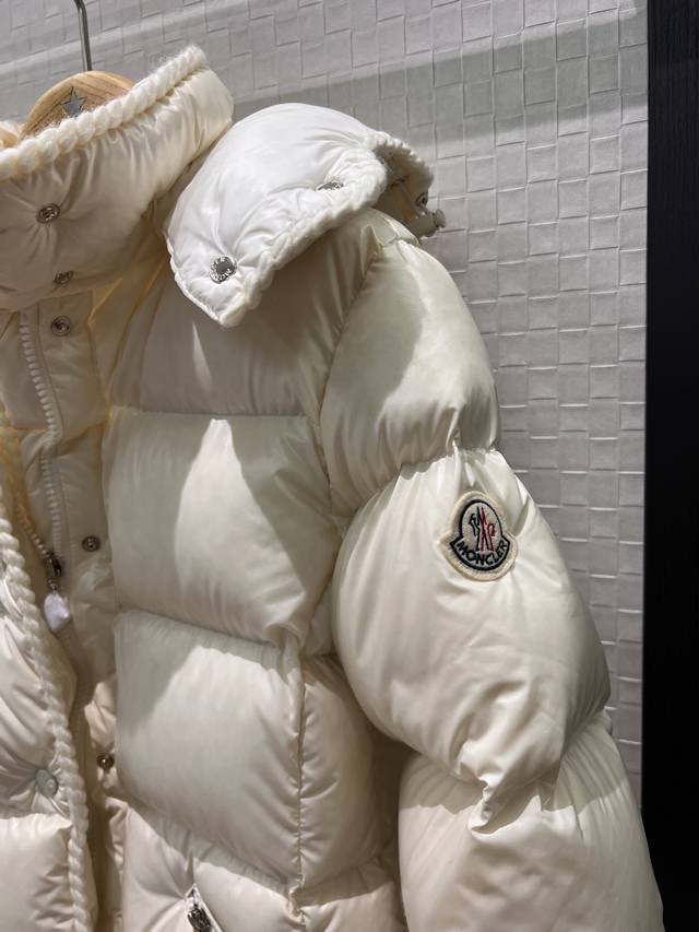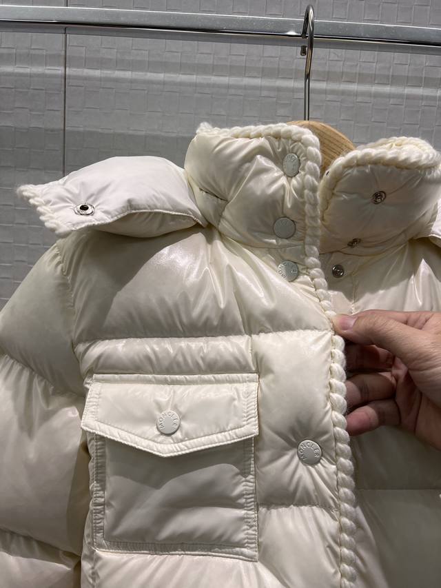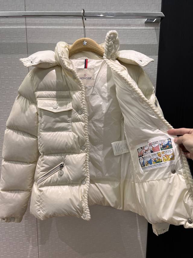 New Heavy-Duty Embroidered Knitted Lace Hooded Down Jacket, Detachable Hood, Classic Logo Sleeve Label Decoration, 90% Down, 10% Feather, Loose Fit, Casual, Slim Fit, Youthful, Fashionable, Versatile, Blue/White, 1-4