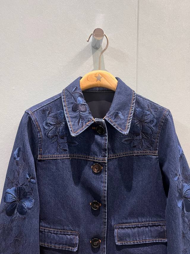 New heavy-duty positioning embroidery floral lapel short denim jacket exquisite versatile temperament commuting leisure age reduction S-Xl