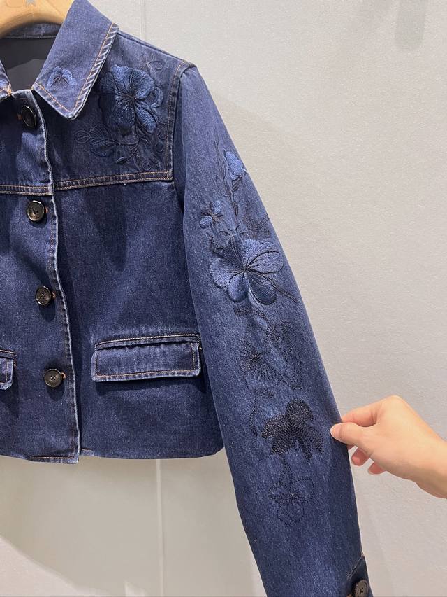 New heavy-duty positioning embroidery floral lapel short denim jacket exquisite