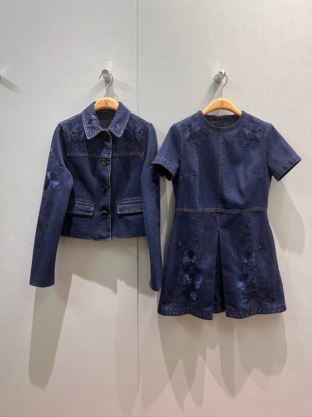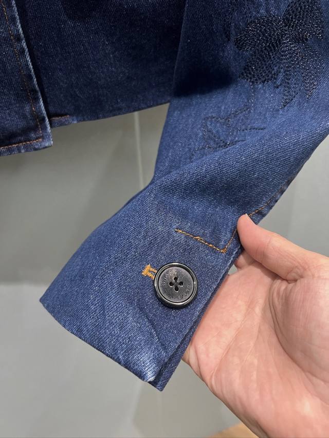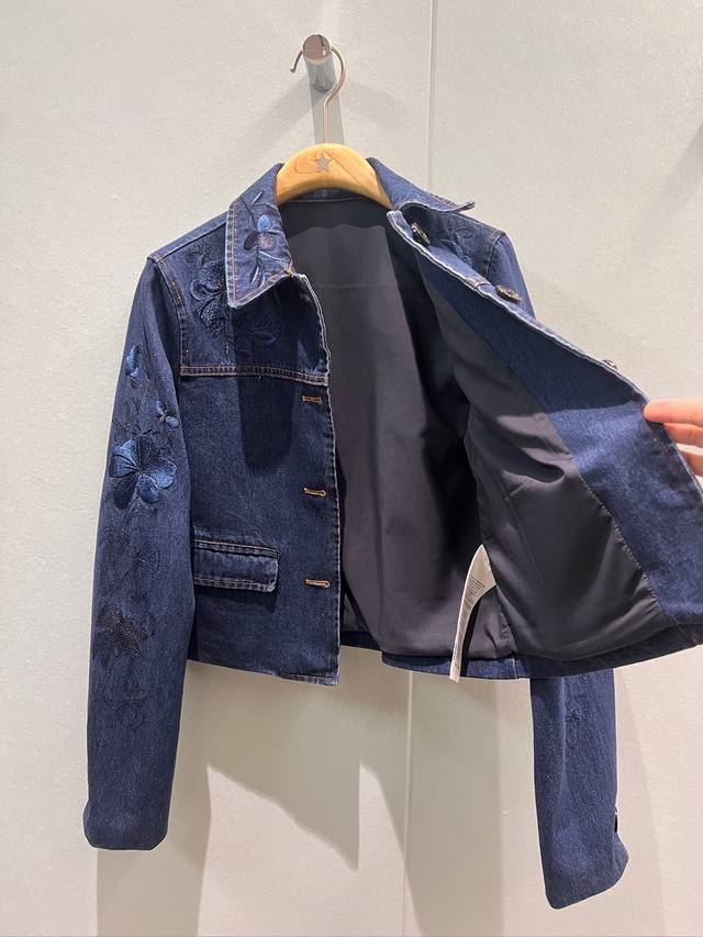 / New heavy-duty positioning embroidery floral lapel short denim jacket exquisite