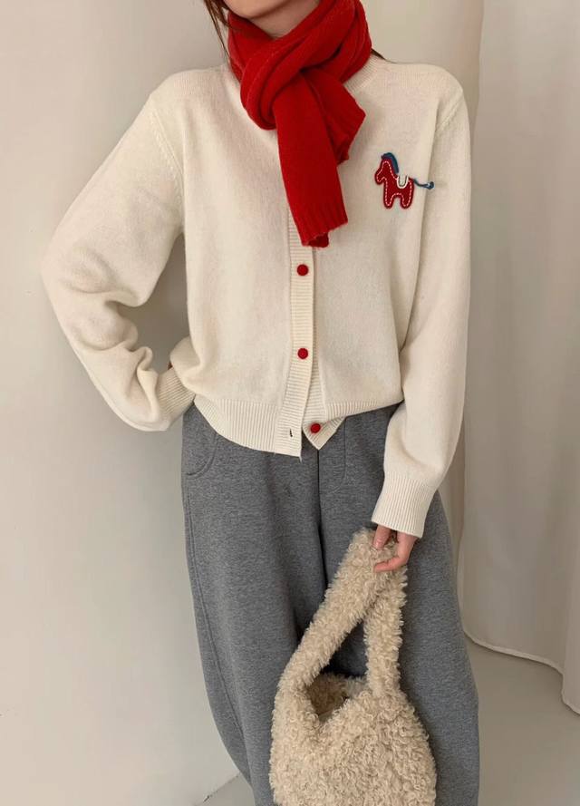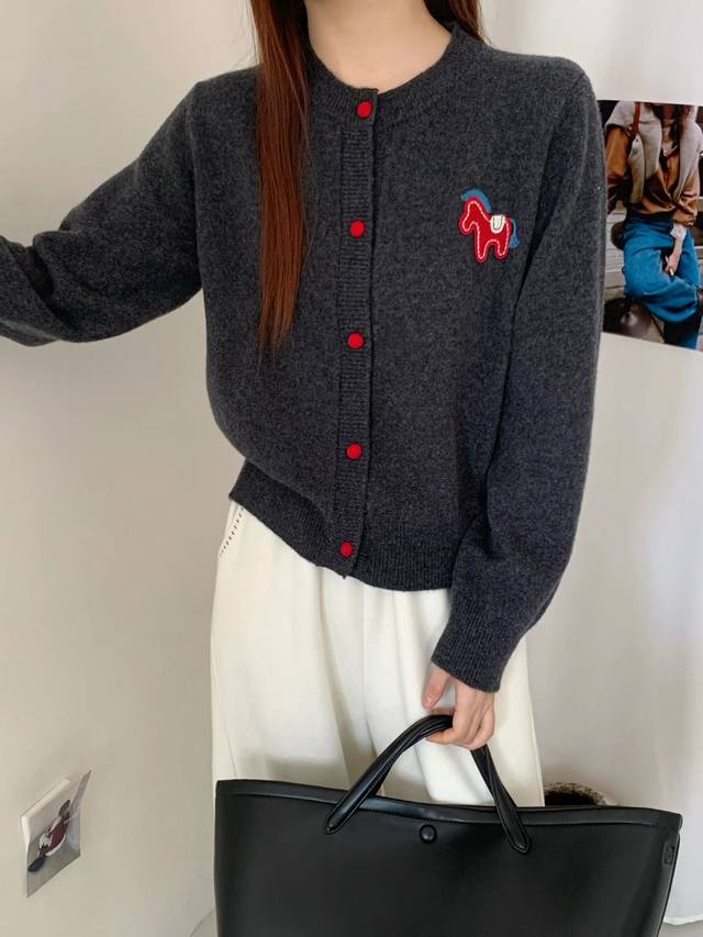 New high-end European style embroidered pony cardigan for autumn and winter, fashionable and versatile.