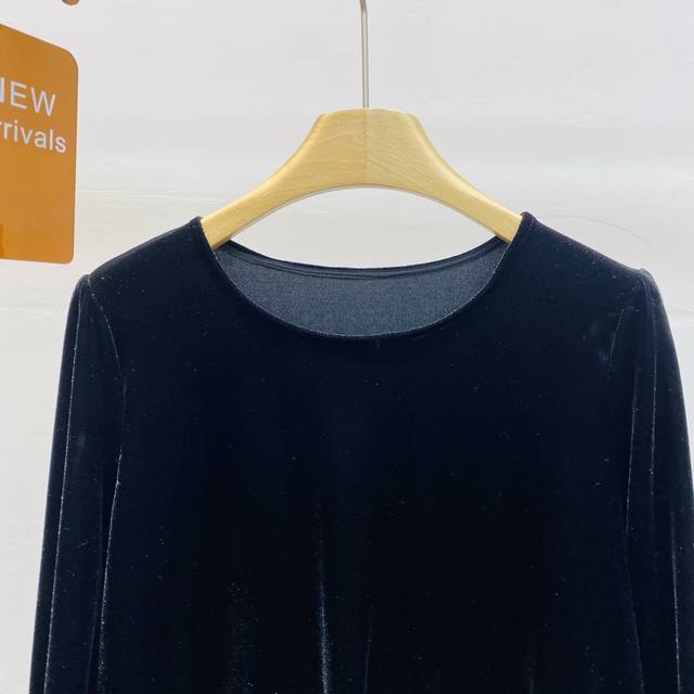 / New high-end temperament contrast color round neck long-sleeved silk velvet top