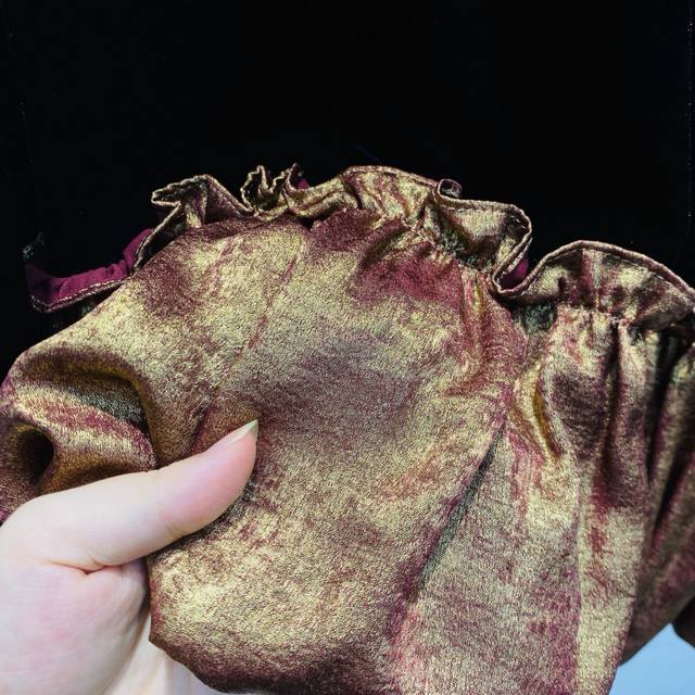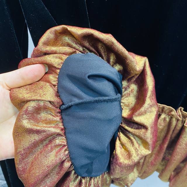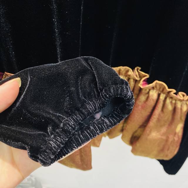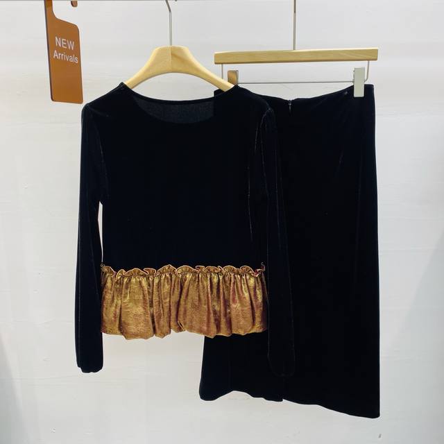 New high-end temperament contrast color round neck long-sleeved silk velvet top skirt two-piece suit Smlxl