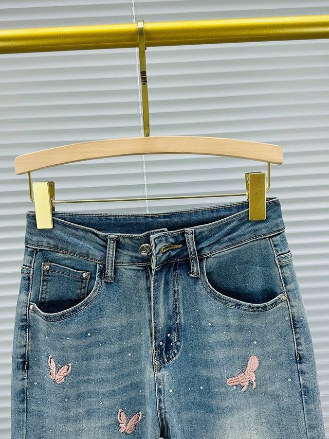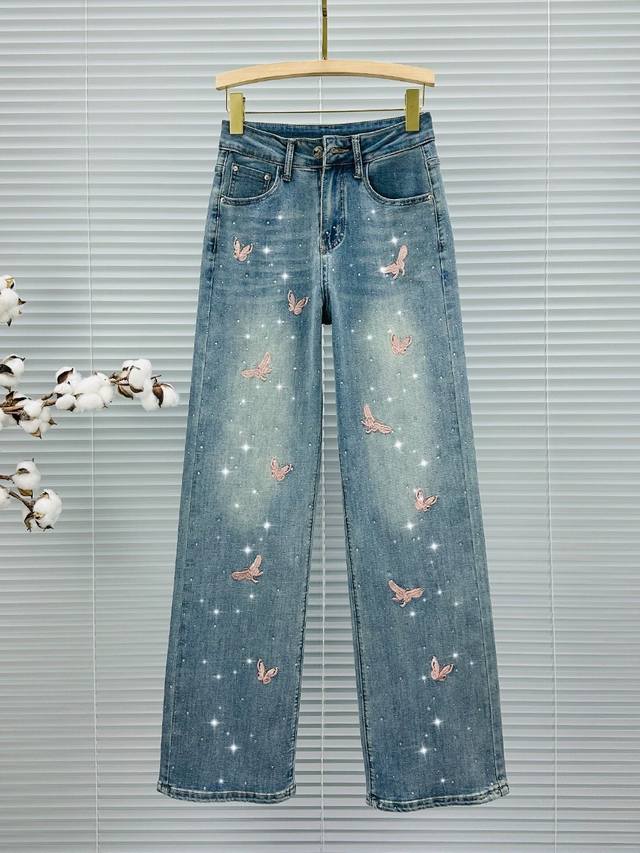 / New high-quality jeans with embroidery and hot diamond decoration, slightly str