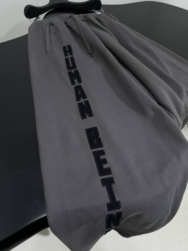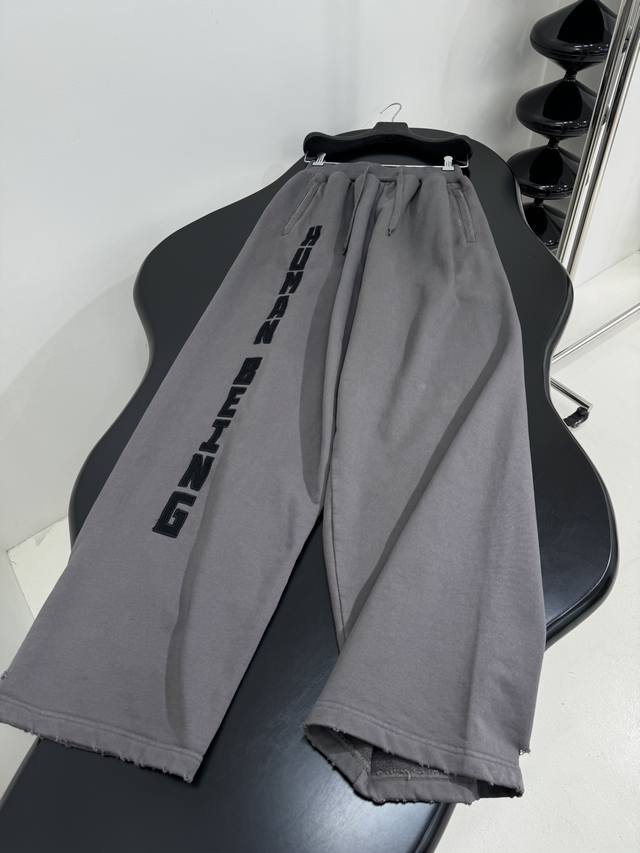 New Human Being Shifted track pants. Made from custom-dyed jersey. Straight-leg, mid-rise fit. Embroidered Human Being Shifted logo on left leg. Washed and ripped finish. Elastic waistband with drawstring. Unisex fit. High version. Color: Taupe. Size: S.m.