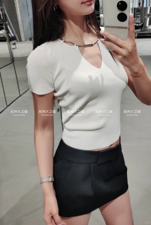 New! Latest Aw 25 New Nameplate Necklace Knit Short-Sleeved Top. Colors: White,