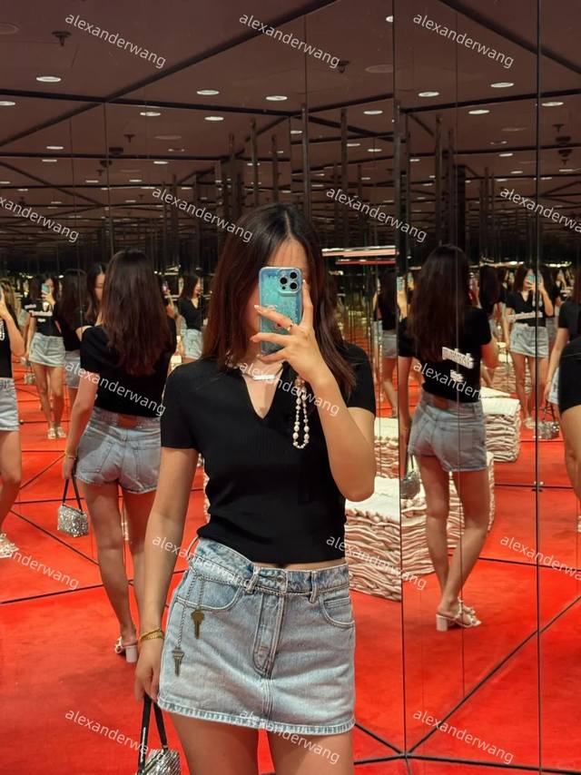 / New! Latest Aw 25 New Nameplate Necklace Knit Short-Sleeved Top. Colors: White,