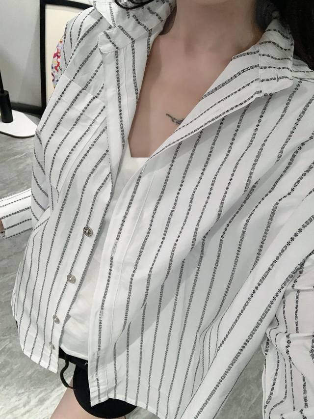 New! Latest Ch 25New Sanskrit jacquard letter striped shirt Size: Sml
