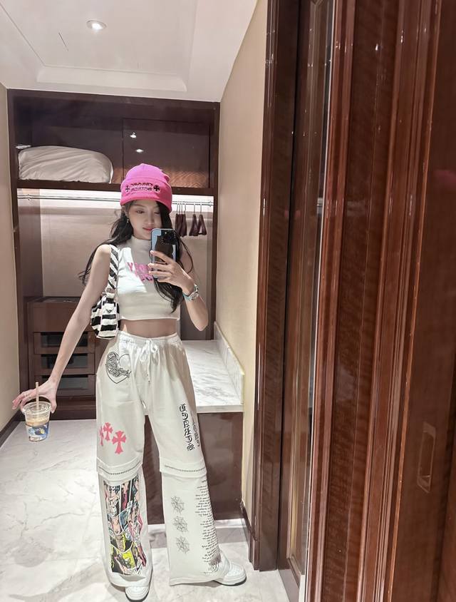 New! Latest Ch 25New White Comic Print Sports Pants Size: Sml