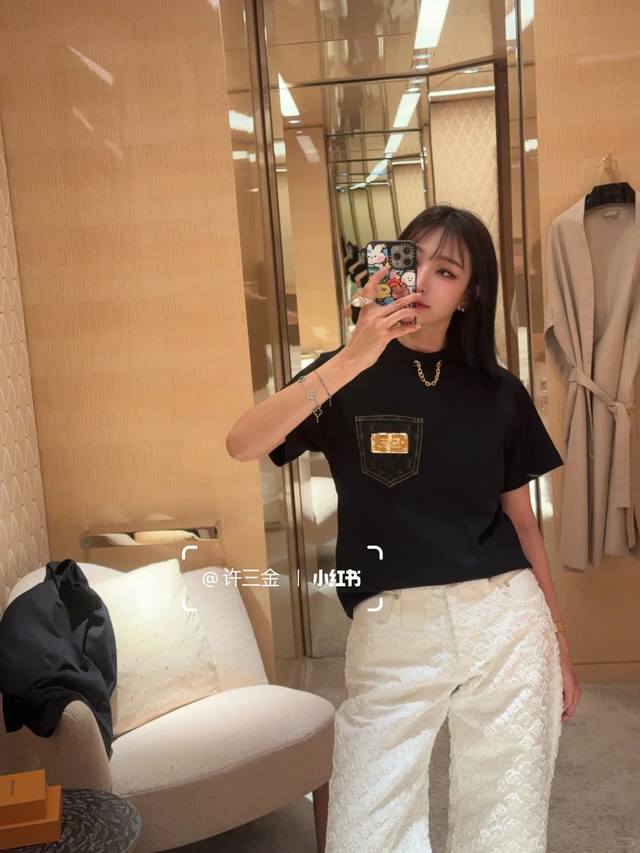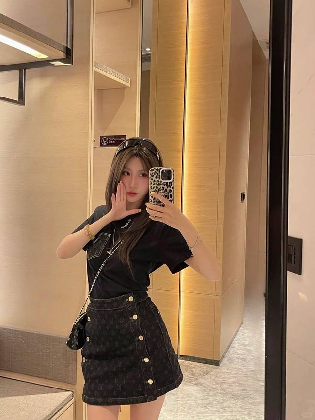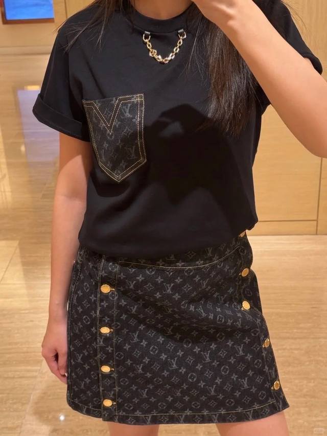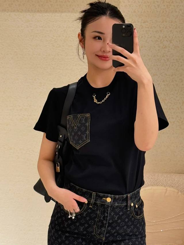 New! Latest L 25 New denim pocket chain T-shirt. Size: Sml.