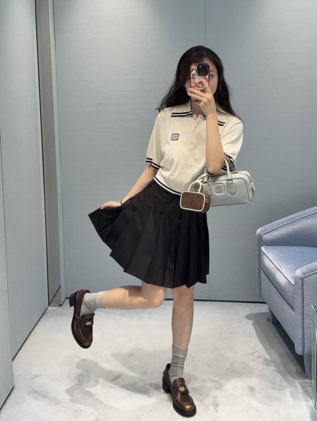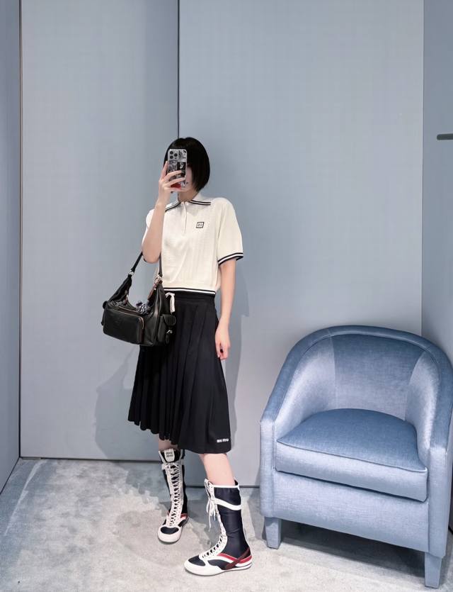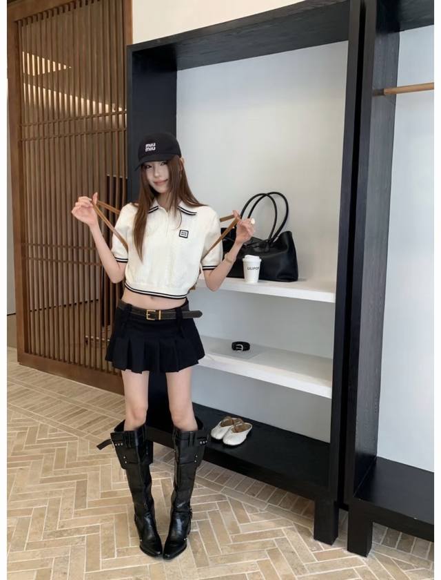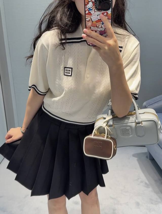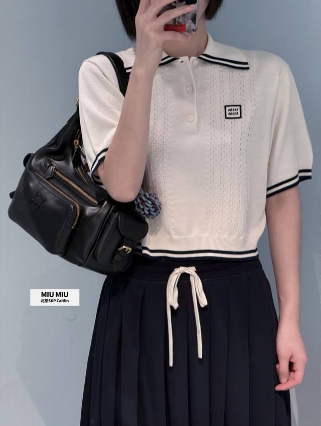New! Latest Miu 25New cable knit short-sleeved lapel sweater. Size: S, M, L, D,