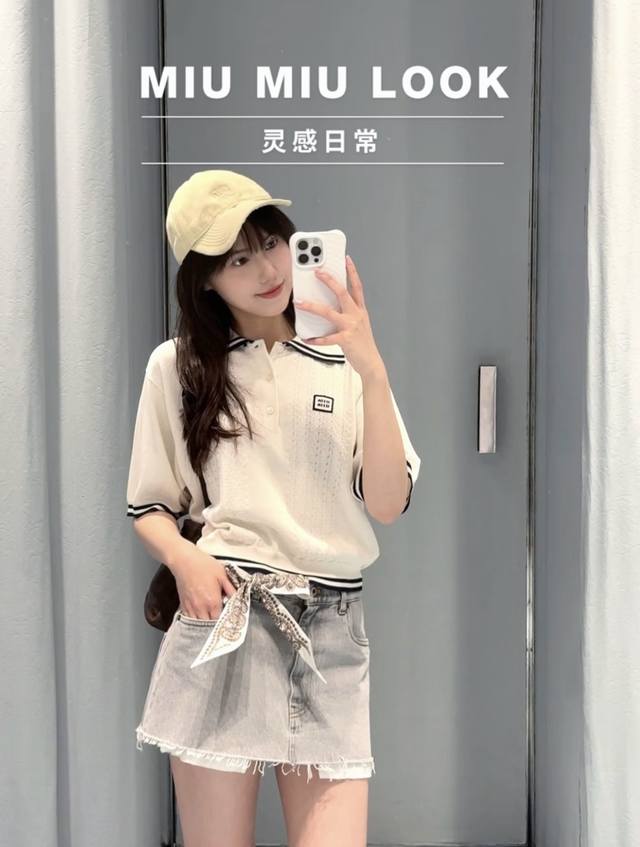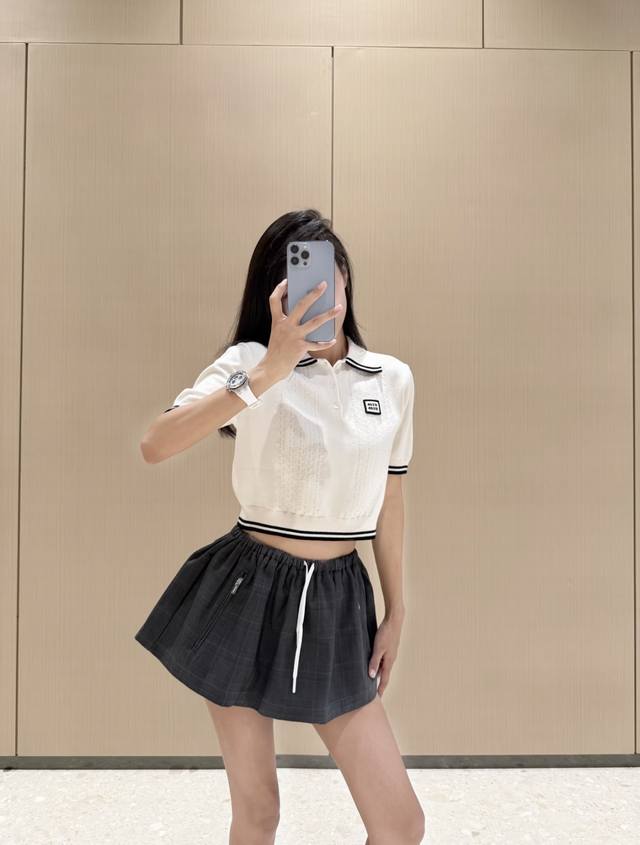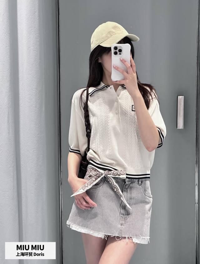New! Latest Miu 25New cable knit short-sleeved lapel sweater. Size: S, M, L, D, D, D.